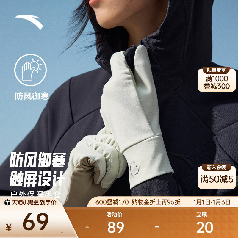 安踏手套冬季防寒保暖加绒加厚防风摇粒绒可触屏手套户外防护手套
