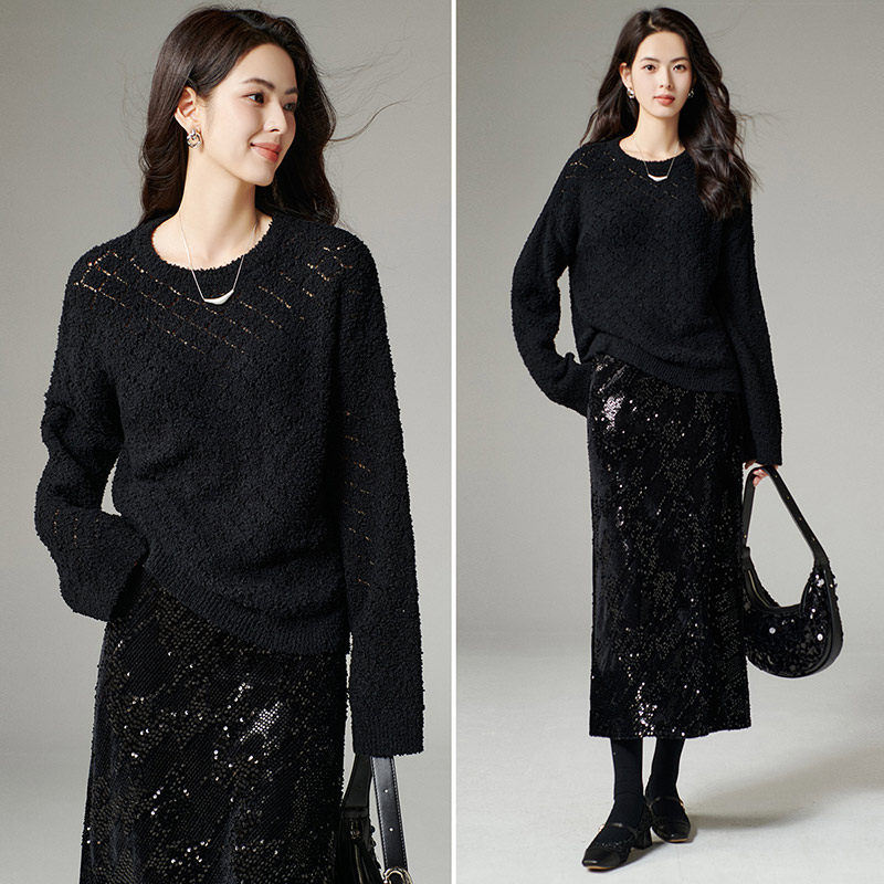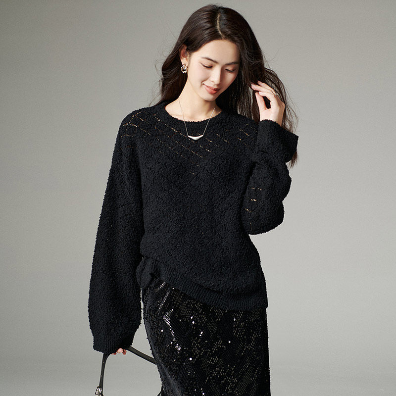 镂空花纹,宽松显瘦,日常休闲,柔软毛绒质