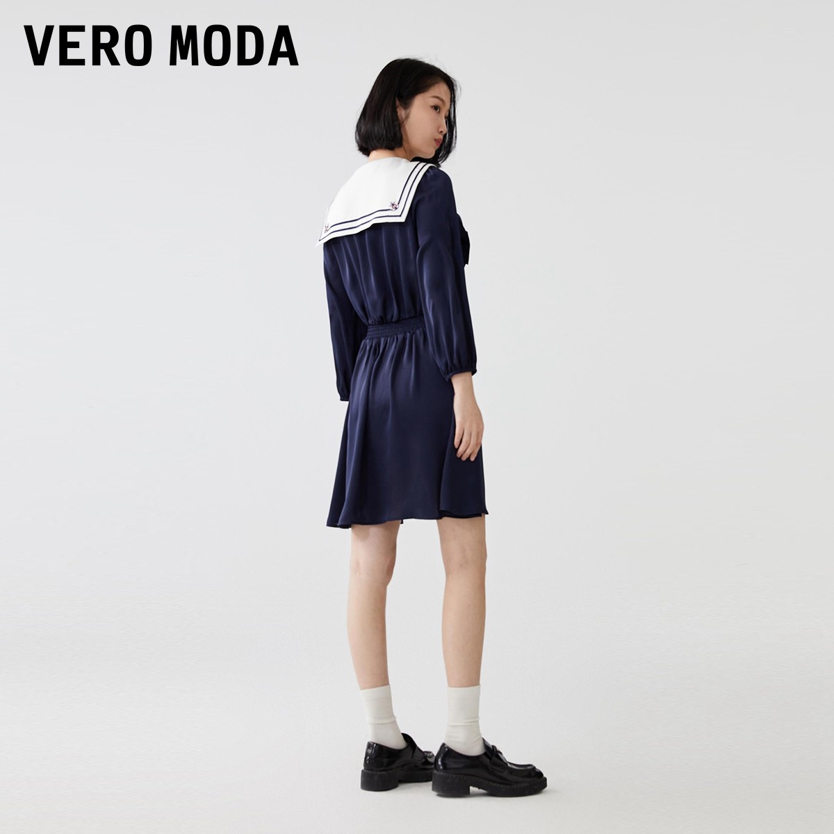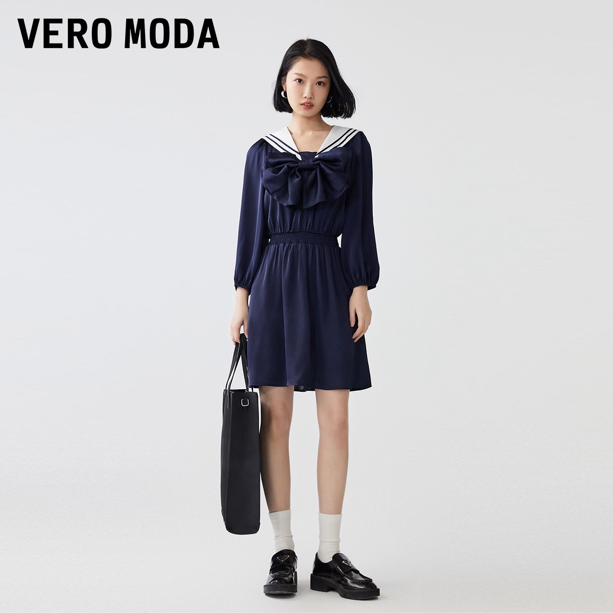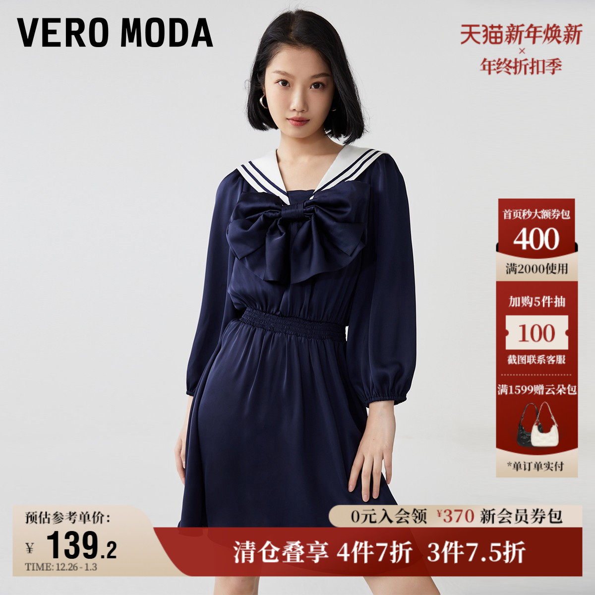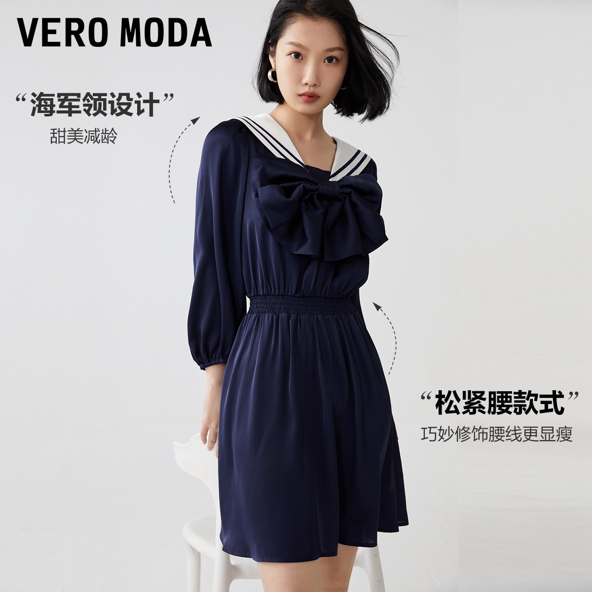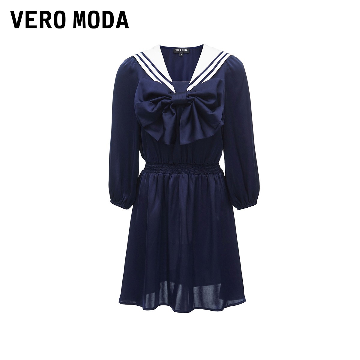 Vero Moda奥莱连衣裙子秋季清仓学院水手海军风减龄蝴蝶结短裙女