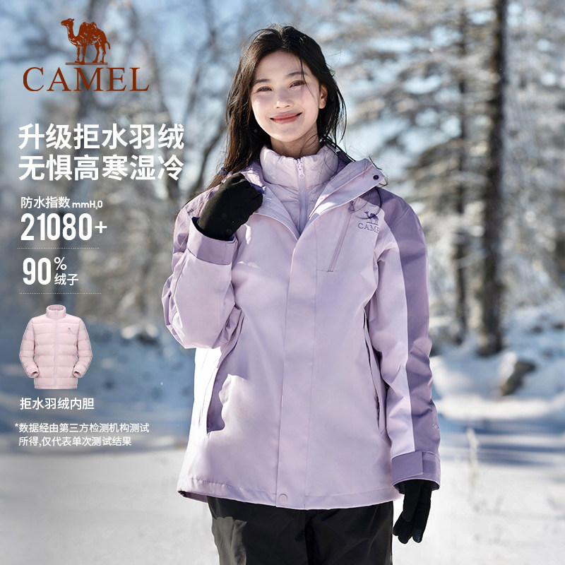 骆驼户外冲锋衣女款25年三合一鹅绒内胆三防保暖羽绒登山服外套男