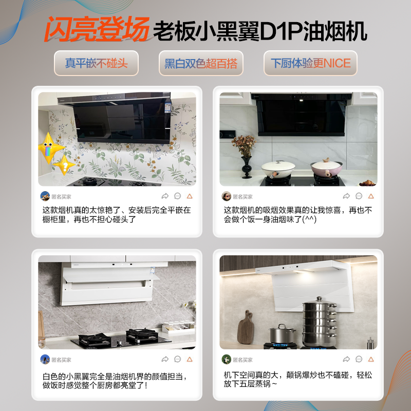 老板小黑翼D1P油烟机燃气灶具套装家用顶侧三吸厨房抽油烟机套餐