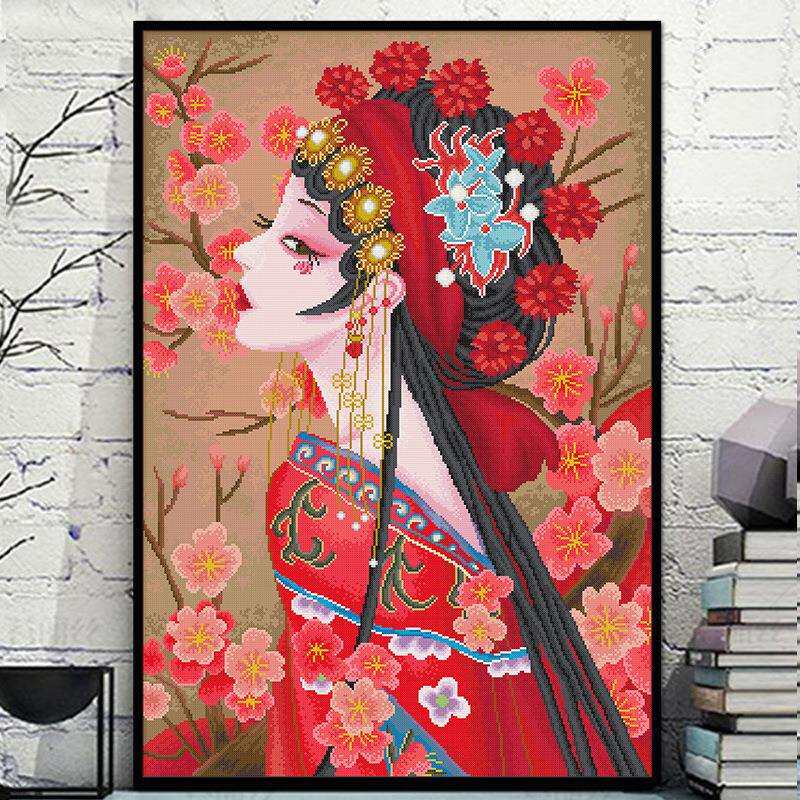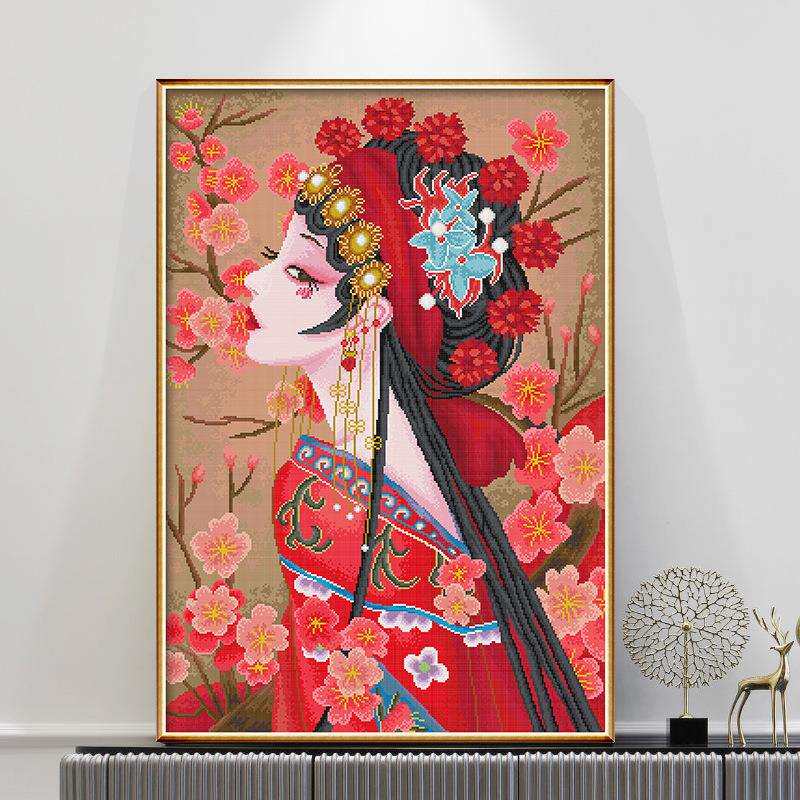 A5L满绣十字绣2023新款线绣京剧花旦古风美女客厅卧室小件手工自