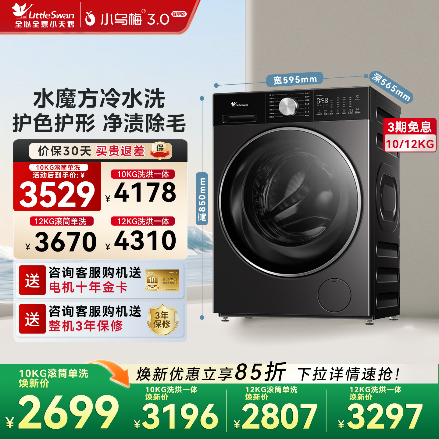 【纯平全嵌】小天鹅小乌梅3.0轻享版10/12KG滚筒家用全自动洗衣机