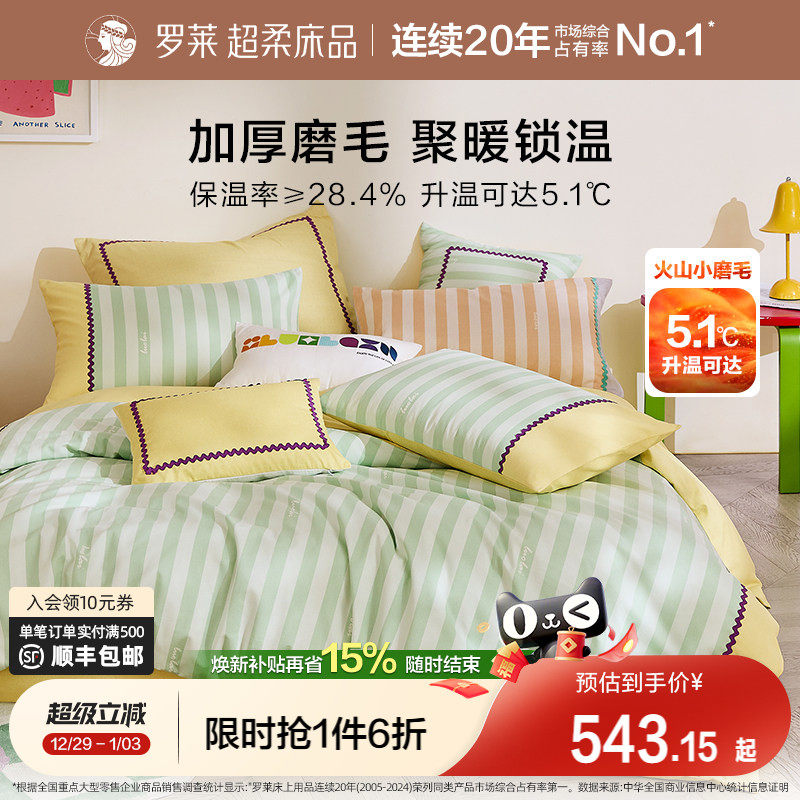 【断码清仓】罗莱家纺全棉磨毛四件套纯棉加厚保暖秋冬床单被套
