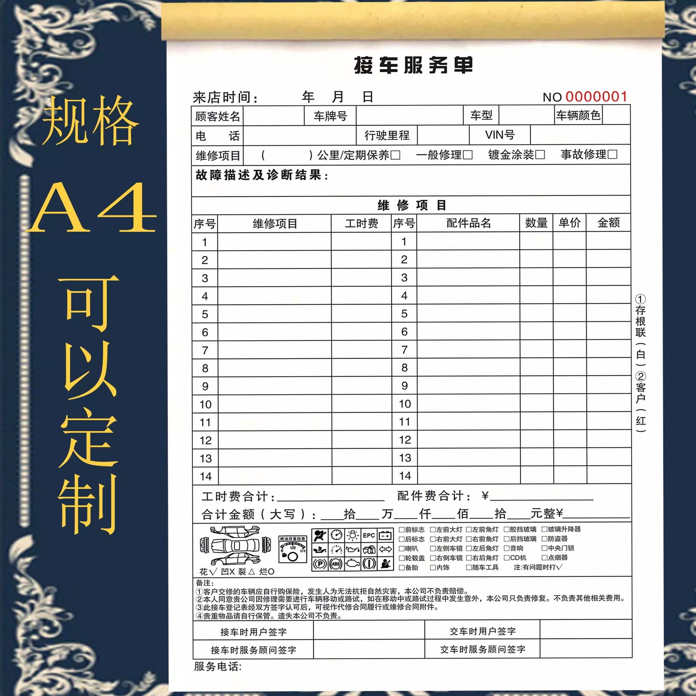 汽车维修保养接车单接车服务单修理厂施工清单维修服务结算单定制