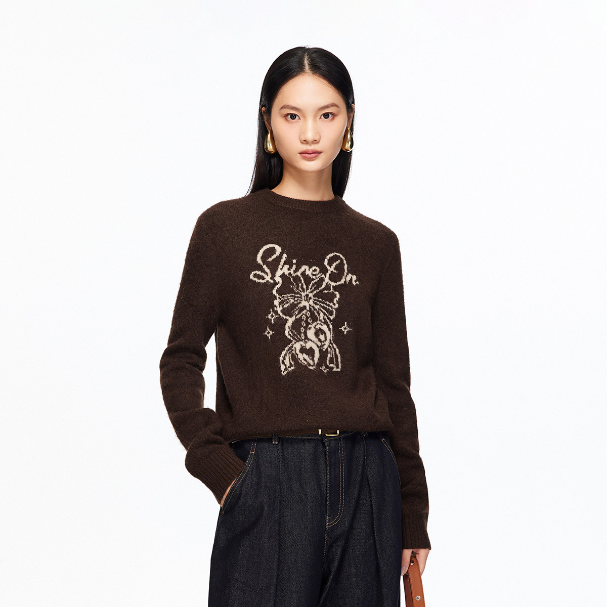 三福毛衣慵懒高级感2025新款冬季可爱毛绒小狗宽松上衣女装509727