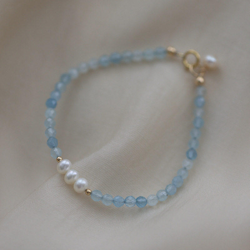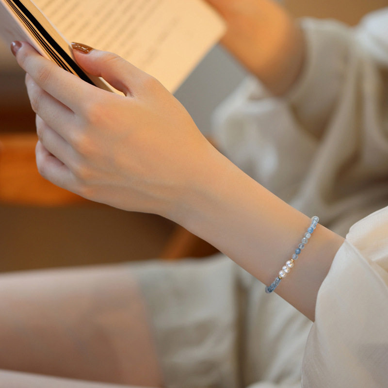 海蓝宝天然石手链女小众高级感夏季新中式水晶手串手饰配饰
