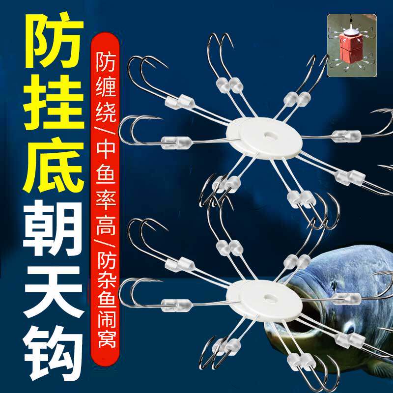 万向朝天钩翻板钩爆炸钩鱼钩饵料翻版盘钩海竿夹饼八爪钩渔具套装