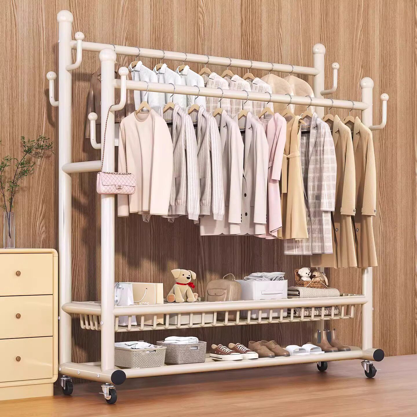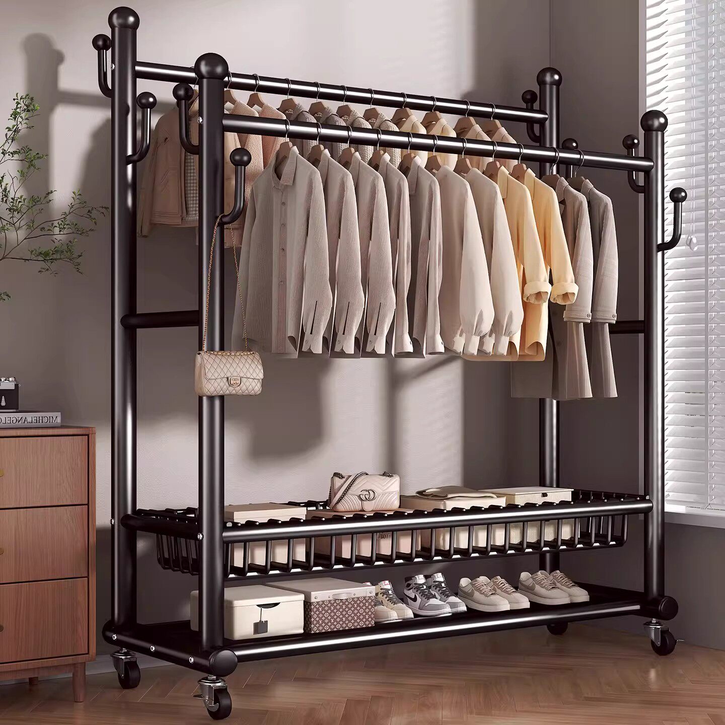 挂衣架落地卧室家用房间室内双杆晾晒衣服架子可移动多功能衣帽架