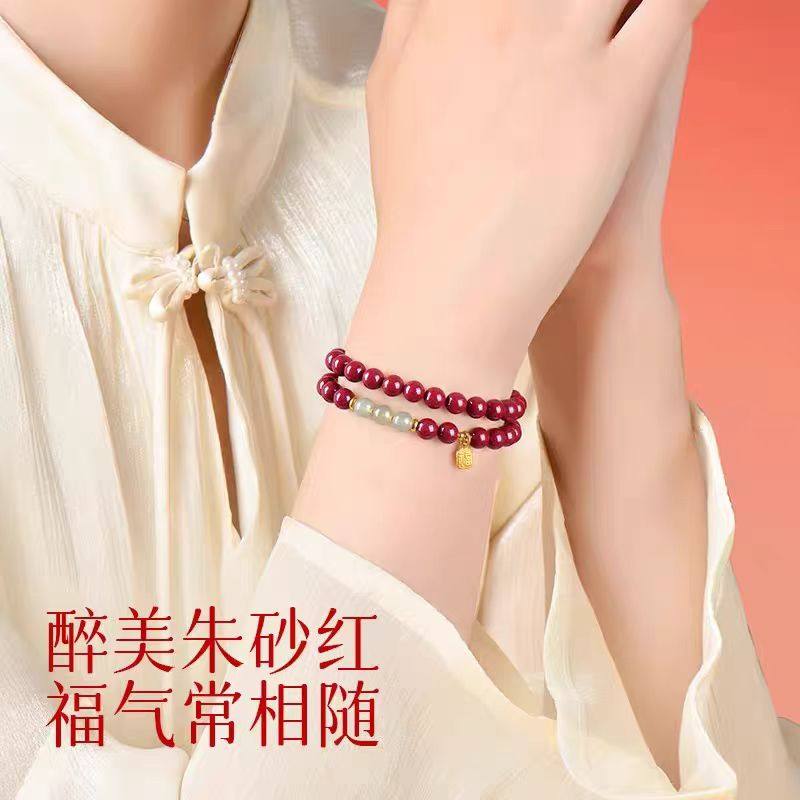 正品朱砂手串转运珠男女本命年好运手链幸运红绳情侣礼物手工编织