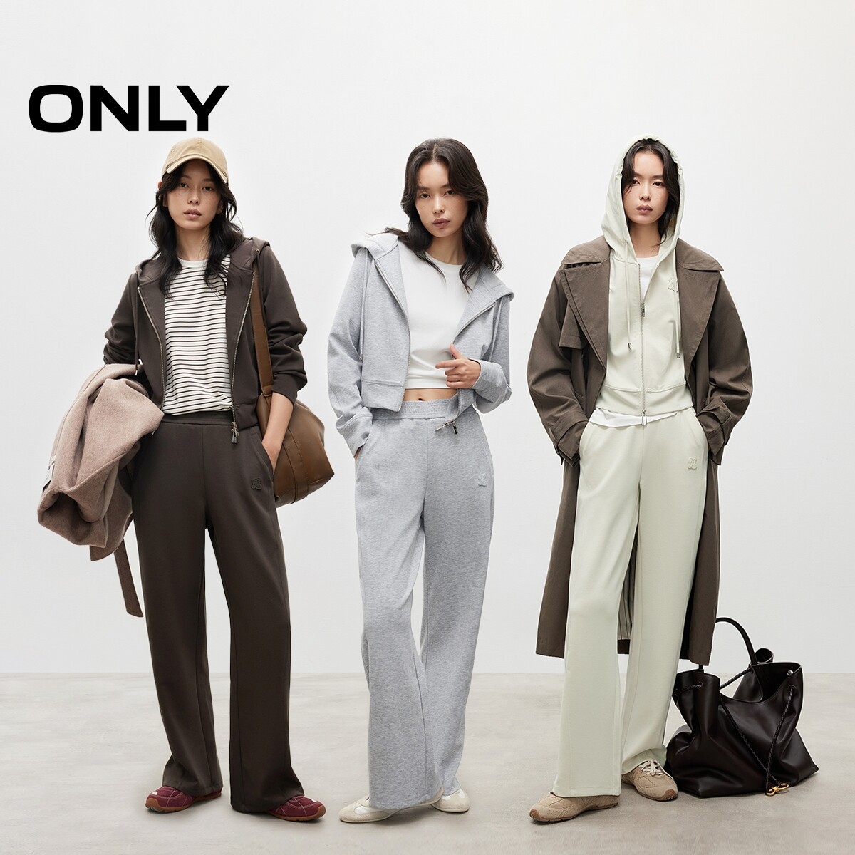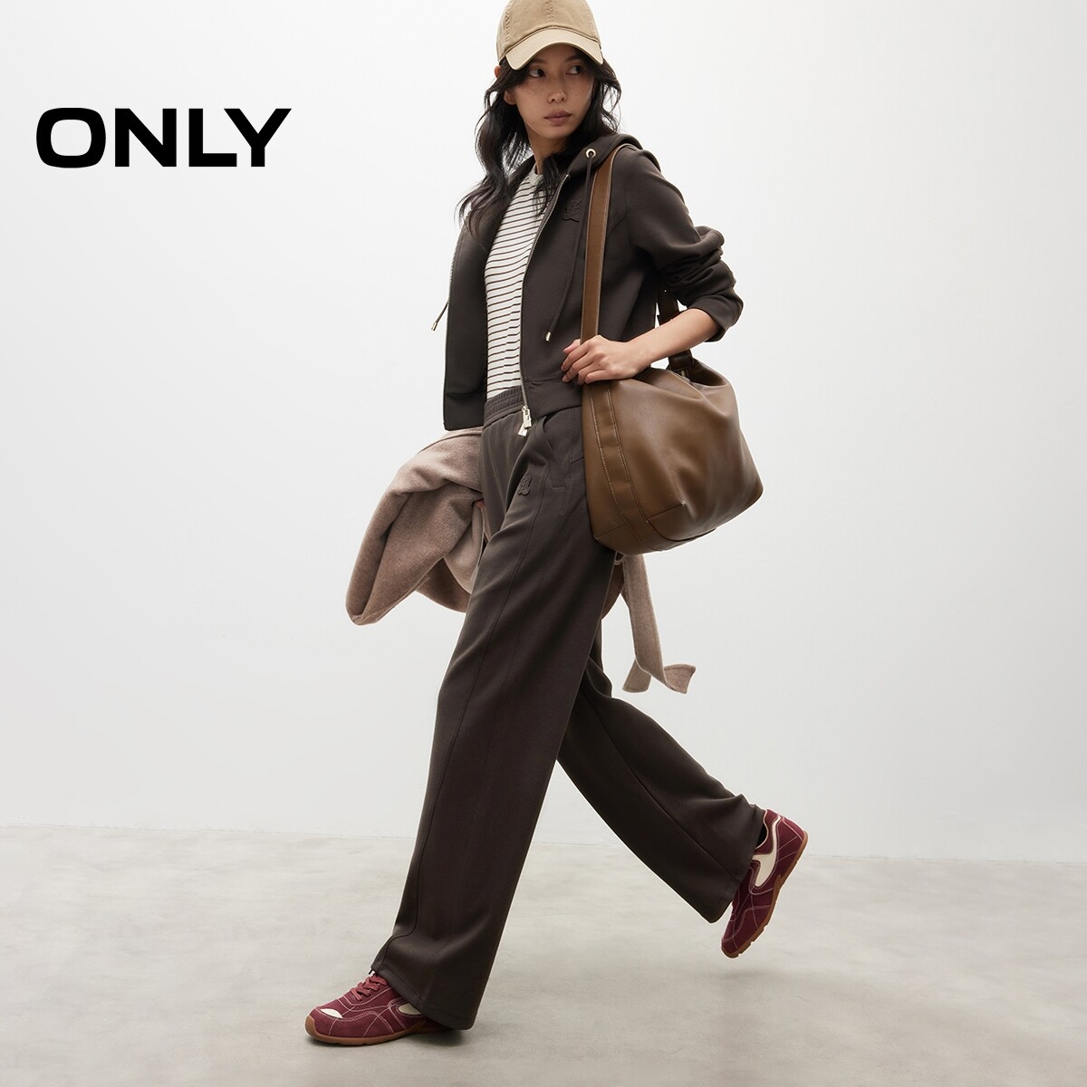 ONLY春季潮流舒适软糯显瘦斜裁宽松长裤松紧腰运动休闲裤女