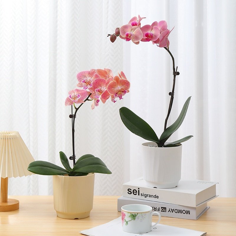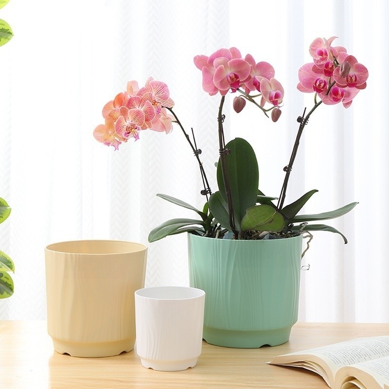 北欧简约花盆蝴蝶兰专用ins风树脂家用塑料虎皮兰花盆带托绿植盆
