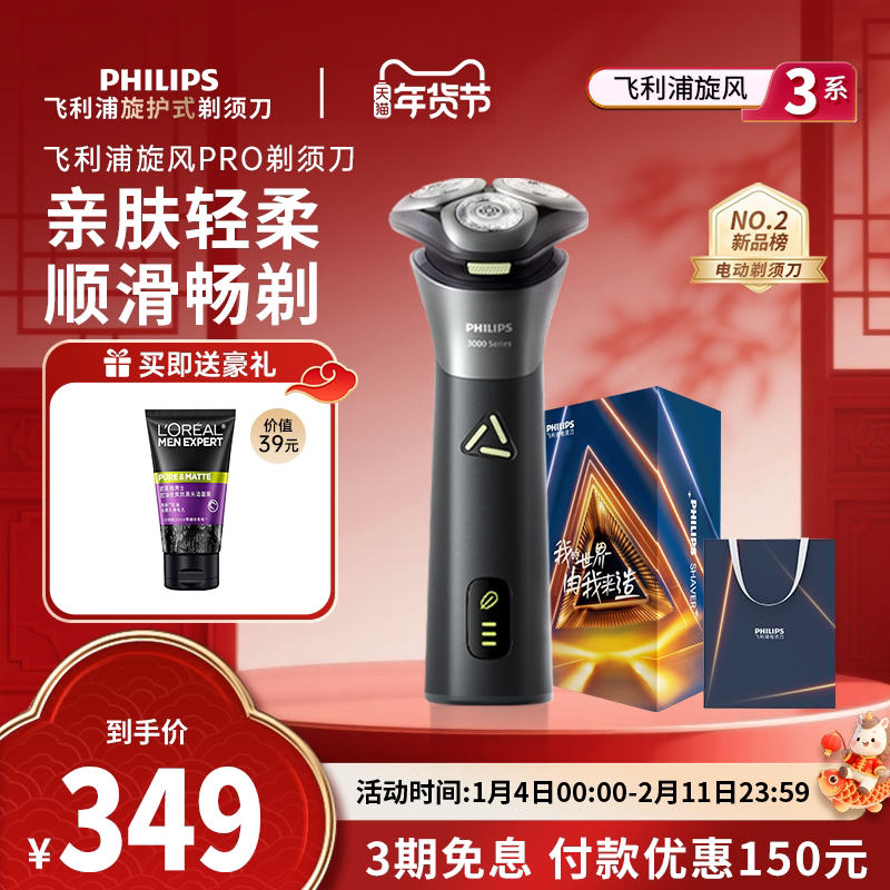 【政府补贴】飞利浦男士电动剃须刀旋风PRO刮胡刀S3883送新年礼物