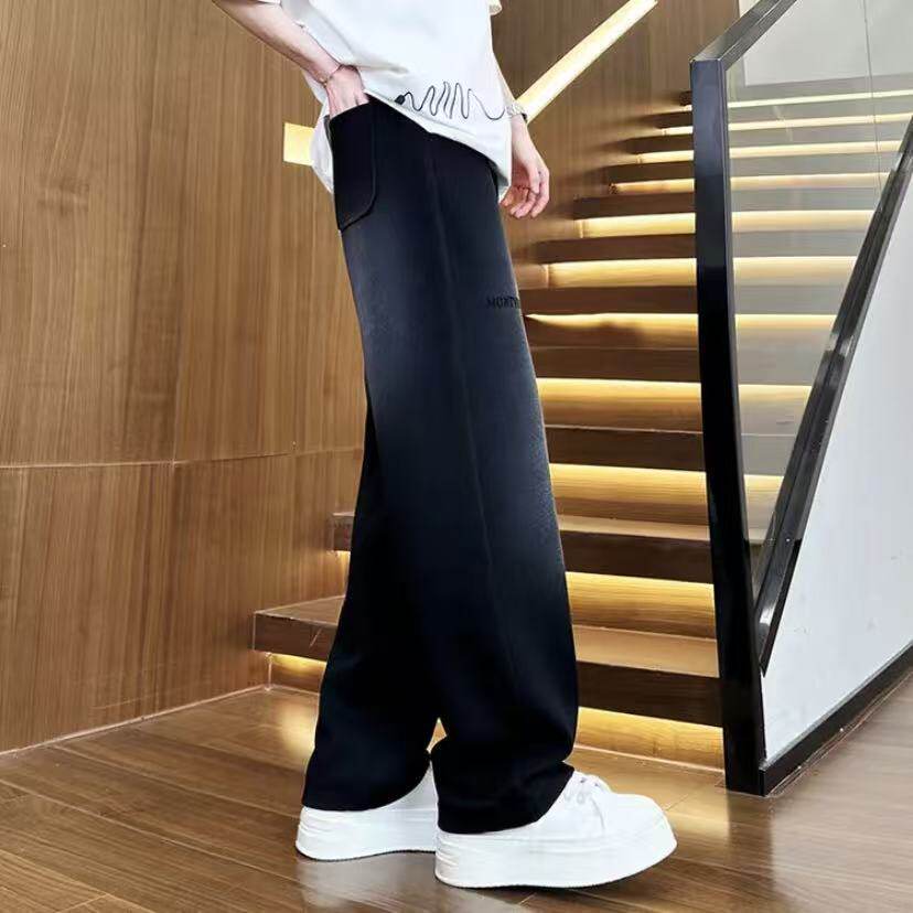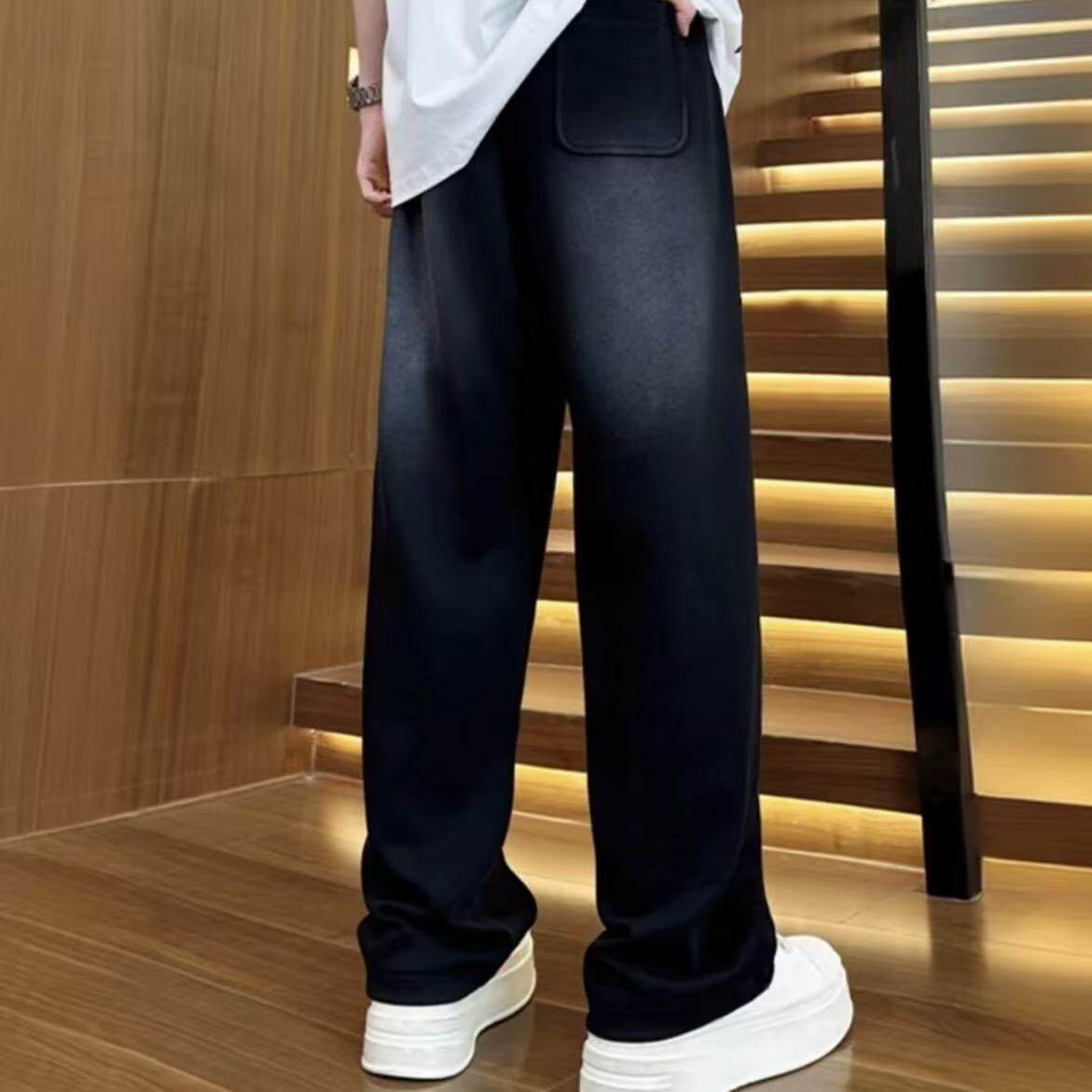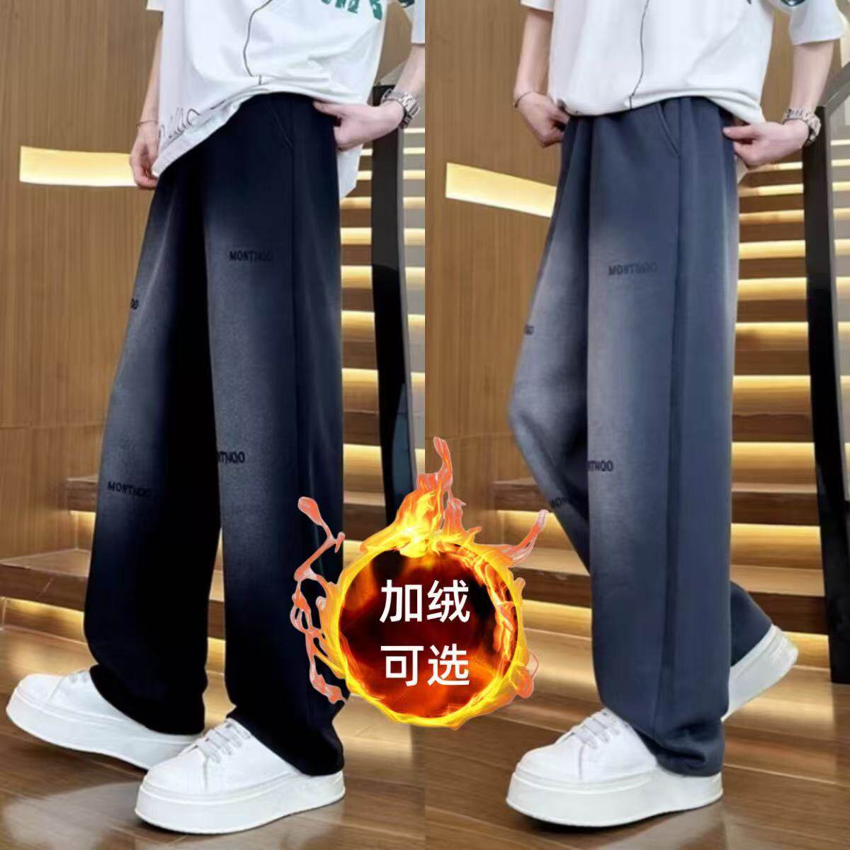 时尚渐变裤子男士秋冬款加绒加厚卫裤男潮牌运动直筒裤休闲长裤男