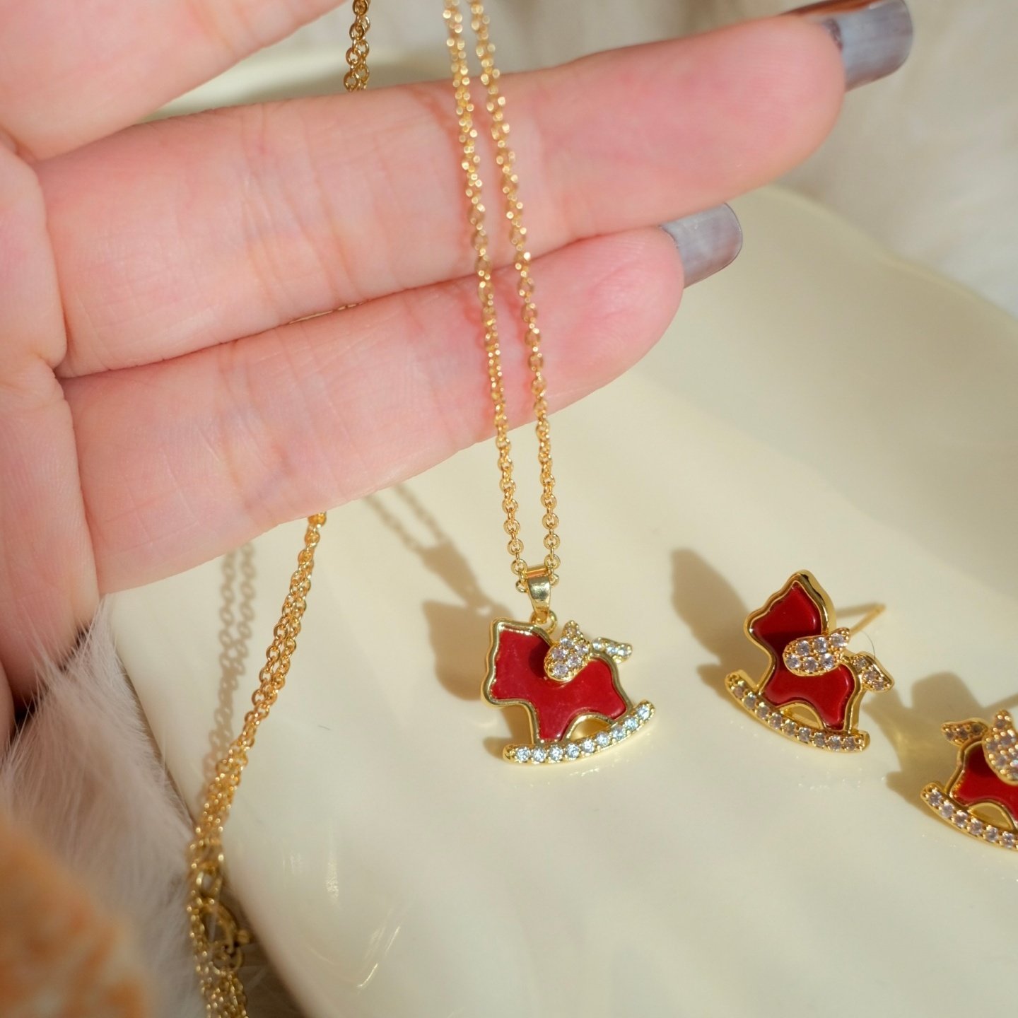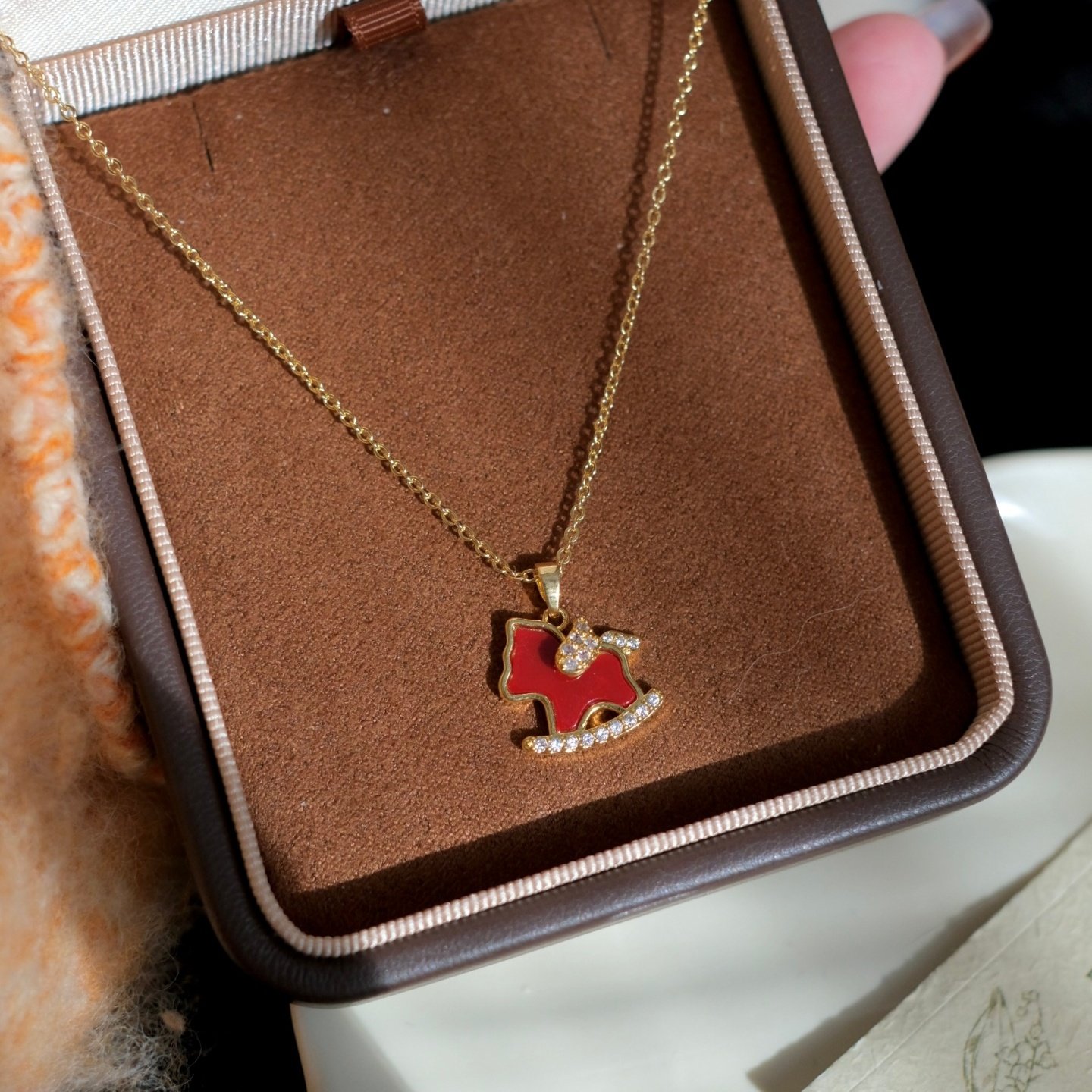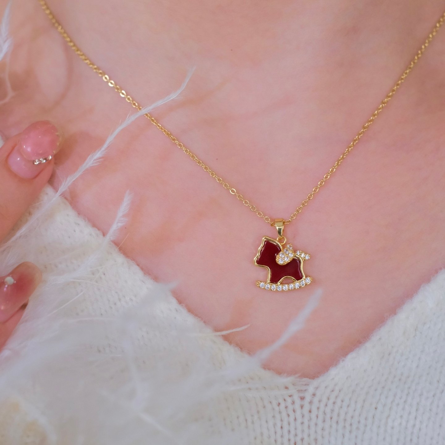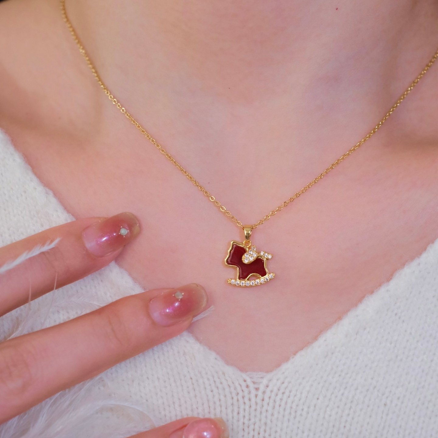 《小红马》马年新年本命年简约红色可爱镶钻摇摇马吊坠项链锁骨链