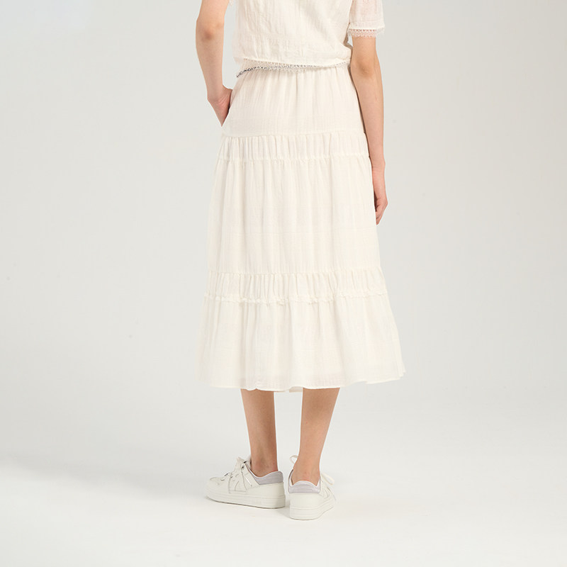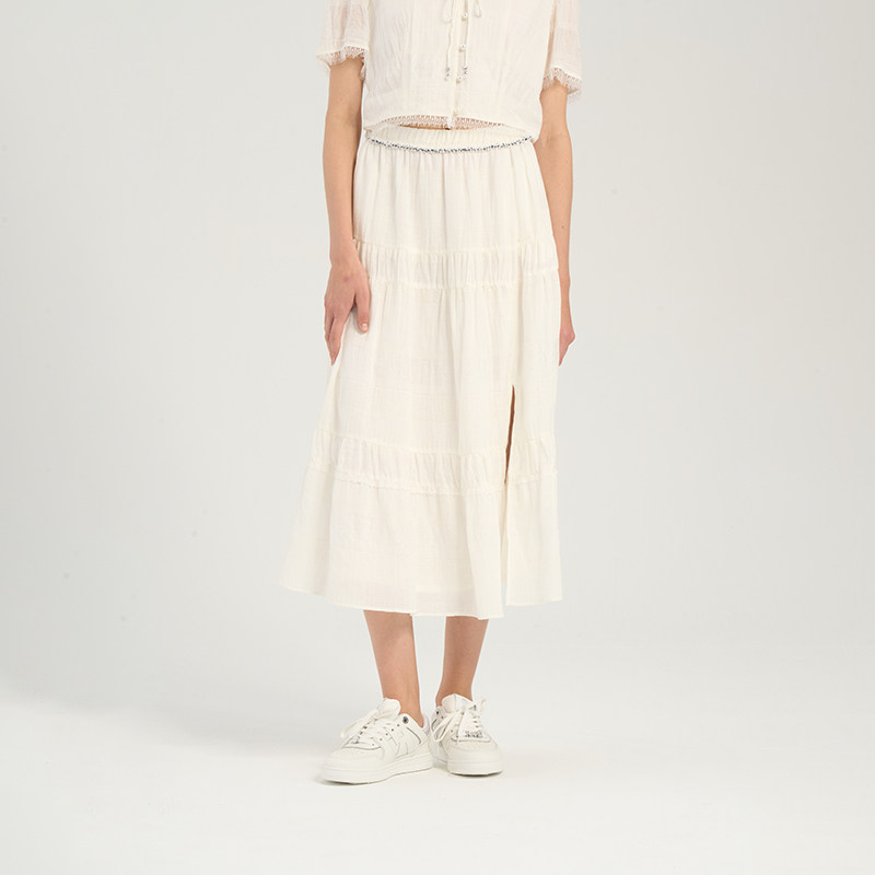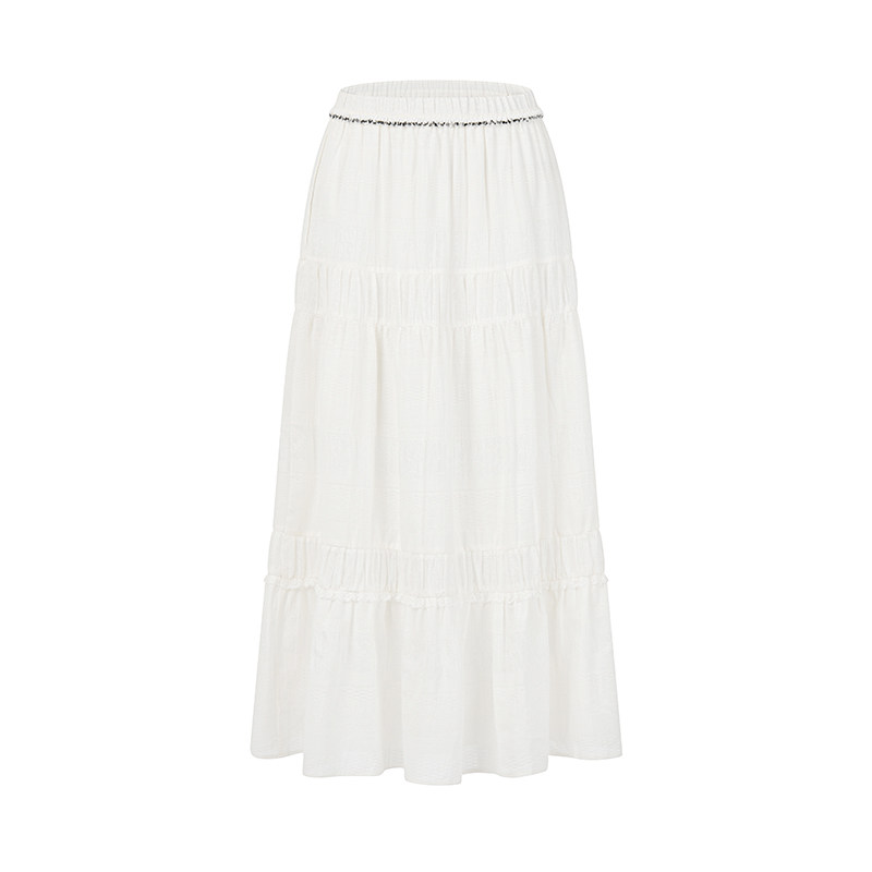 RARE威雅女裙 春夏新款重工珠钻点缀白色休闲度假风A字半身裙