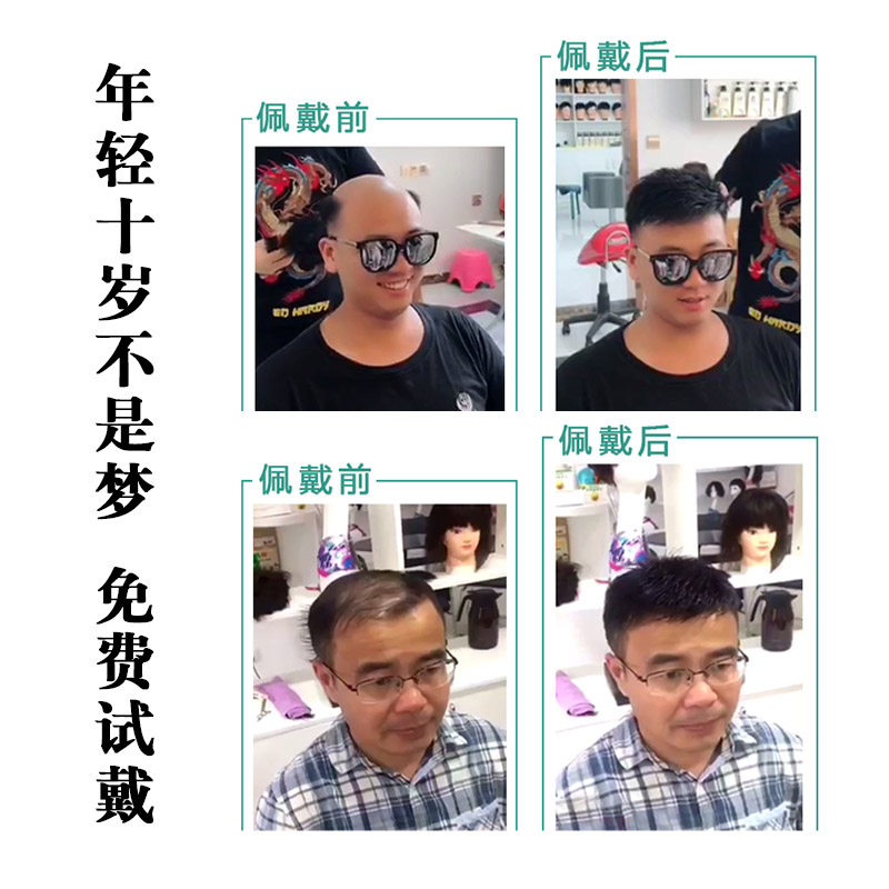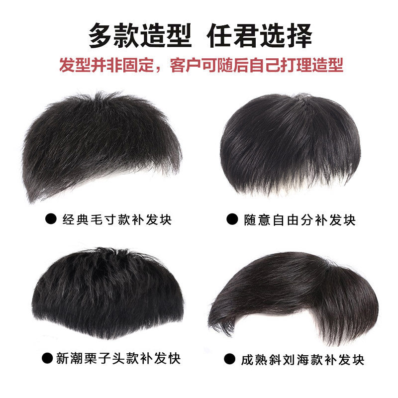 假发男真发头顶补发片隐形透气生物头皮短发补发块男士假发片仿真
