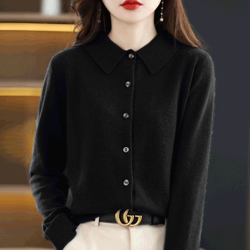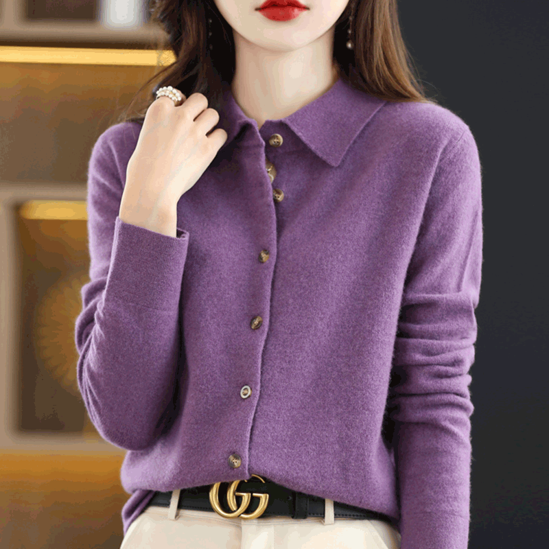 鄂尔多斯市断码羊绒开衫女春秋新款宽松毛衣外套翻领针织羊毛衫