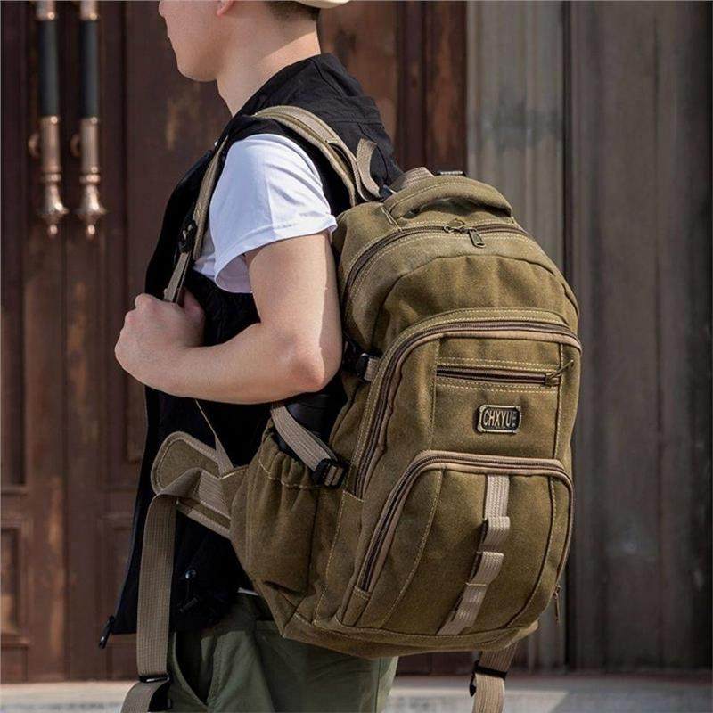 【耐磨耐用】男士帆布双肩背包大容量登山旅行行李包初高中背包男