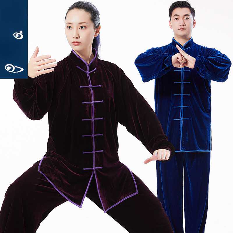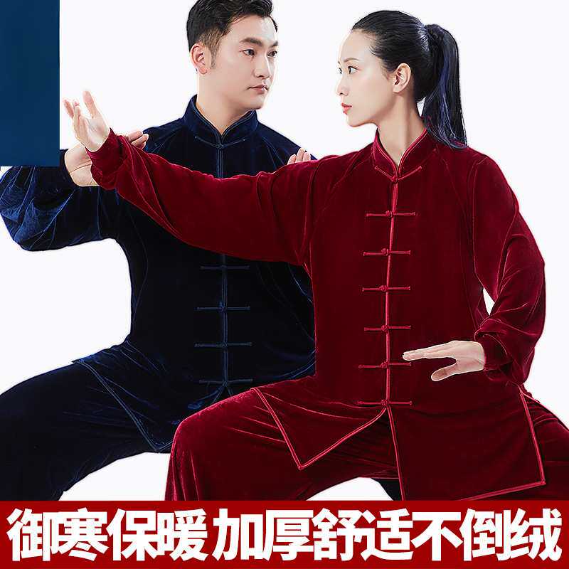 金丝绒太极服男秋冬季加绒加厚太极拳练功夫女武术表演比赛太极服