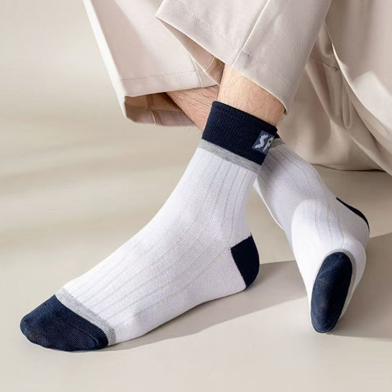 袜子男中筒袜男士袜子吸汗透气长筒袜篮球袜白色男袜白色白塔袜子
