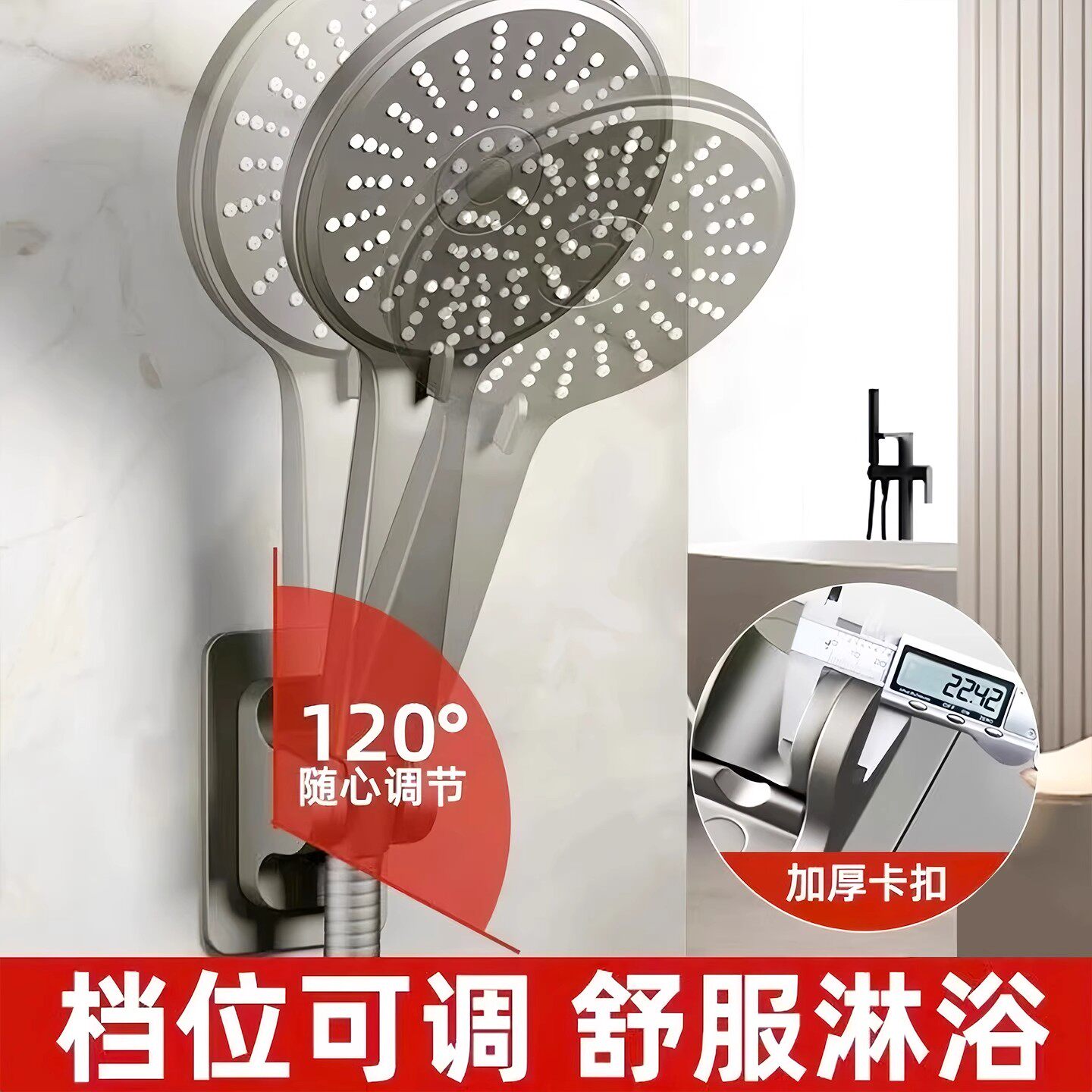 免打孔花洒支架强力承重可调节卫生间浴室淋浴喷头挂钩通用固定座