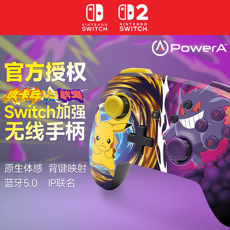 PowerA任天堂官方授权switch1/2 pro手柄 NS2无线游戏手柄蓝牙5.0六轴体感皮卡丘 马里奥 赛车动森塞尔达