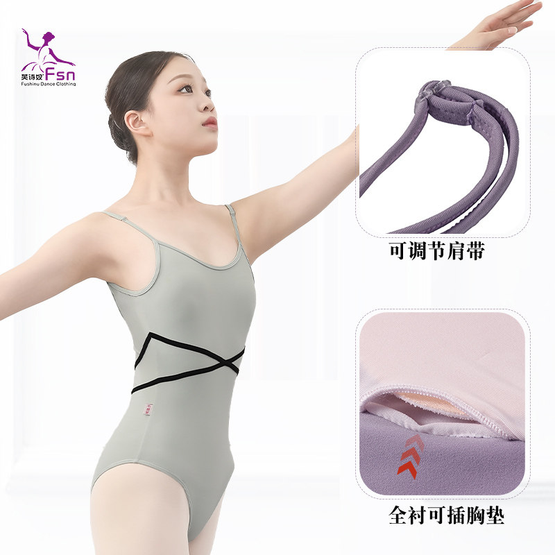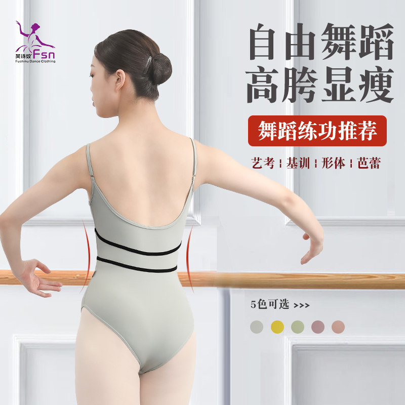 芙诗奴舞蹈服艺考基训体操服吊带收腰显瘦连体服成人芭蕾舞练功服