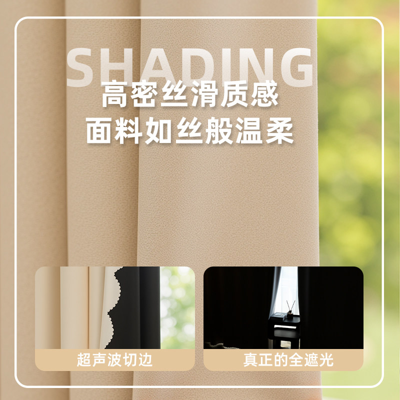 窗帘加厚全遮光免打孔轨道挂钩纯色落地成品帘子2025新款高密梭织