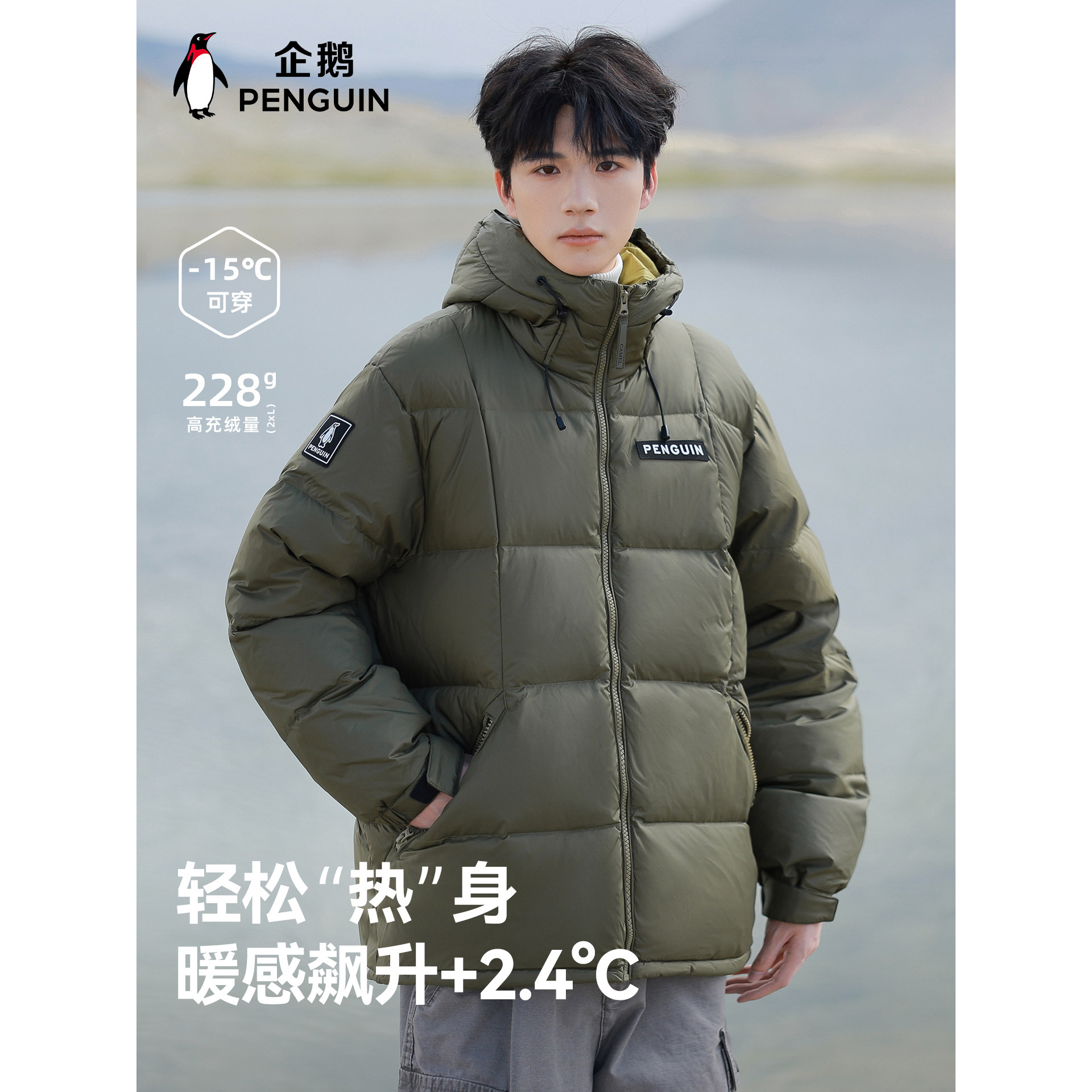企鹅热能羽绒服男冬季情侣短款加绒加厚防寒保暖面包服男装外套