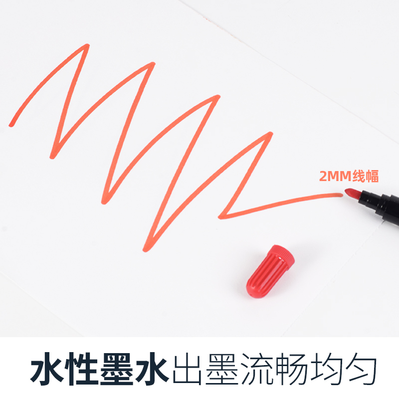 晨光记号笔防水防油不掉色黑色单头油性勾线笔美术专用粗细两头速干马克笔小学生幼儿园儿童绘画红色标记笔