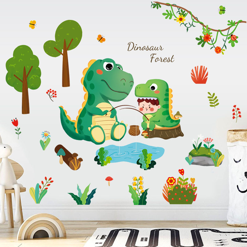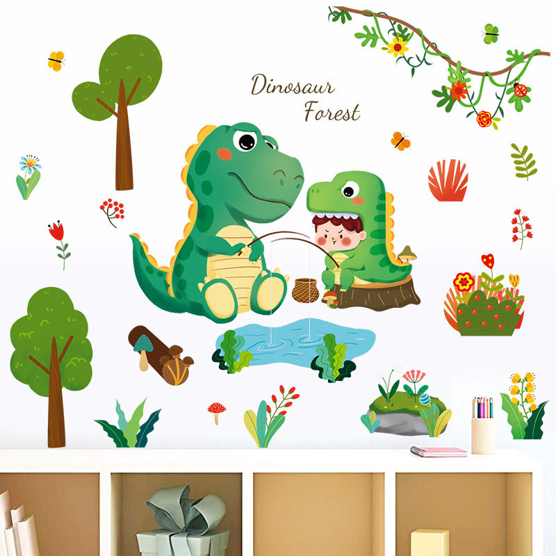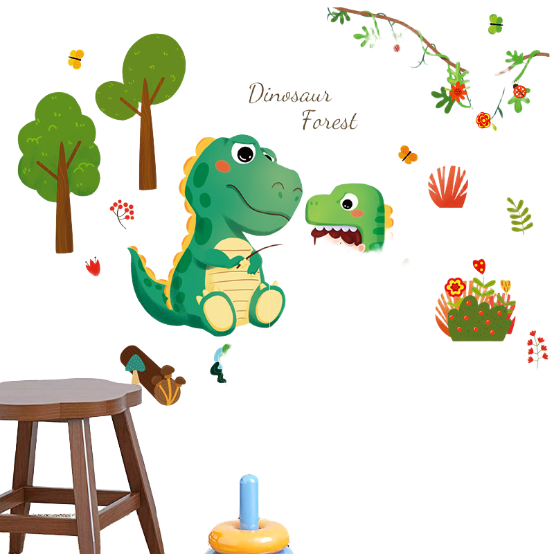 卡通恐龙森林儿童房玄关书房卧室床头门柜背景装饰墙贴画HT72001