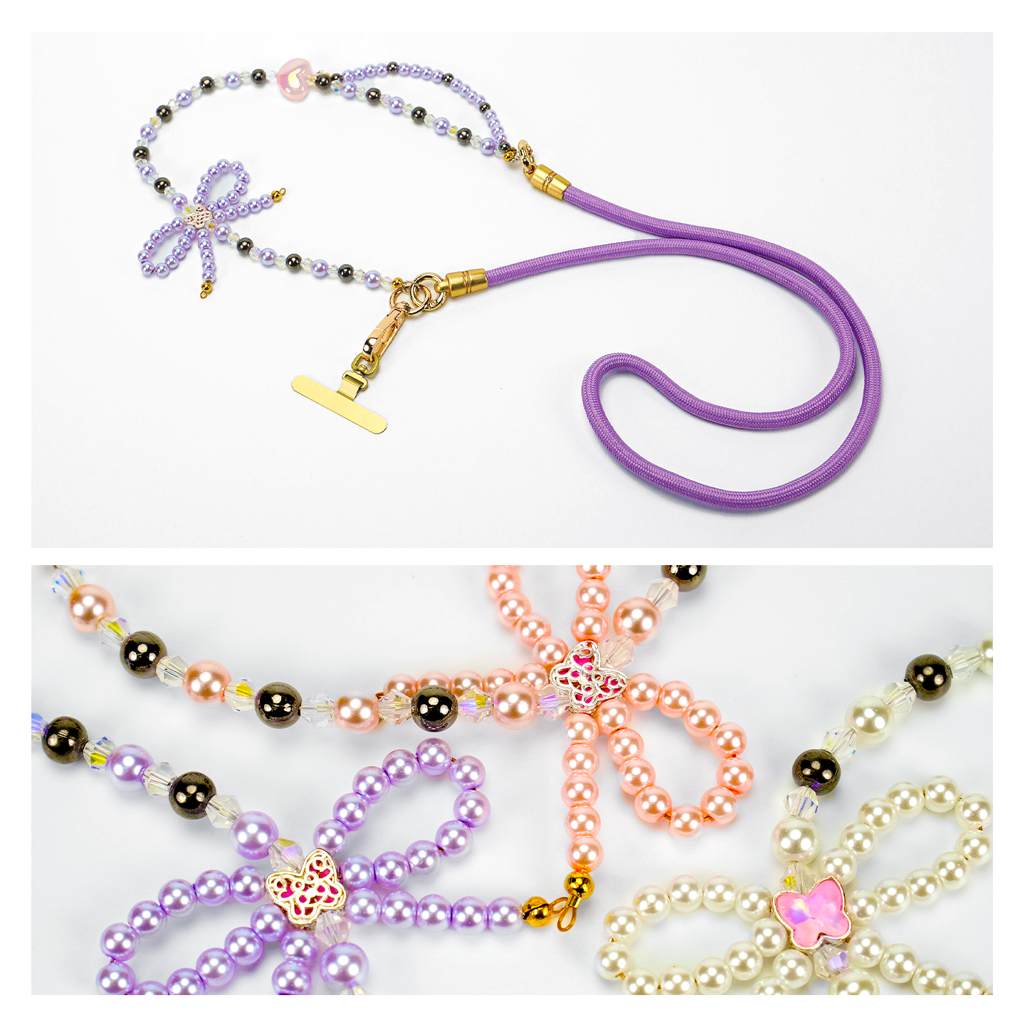 iWALK蝴蝶结手机挂链精致高级感长款百搭斜挎小清新珍珠手机链串珠挂绳女ins风少女心甜美户外挂脖绳带夹片