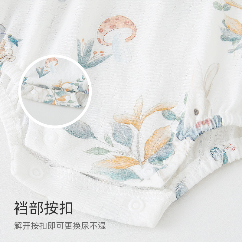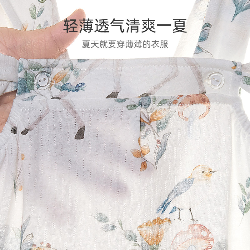 婧麒婴儿宝宝吊带包屁衣哈衣夏季可爱薄款背心纯棉连体衣轻薄衣服