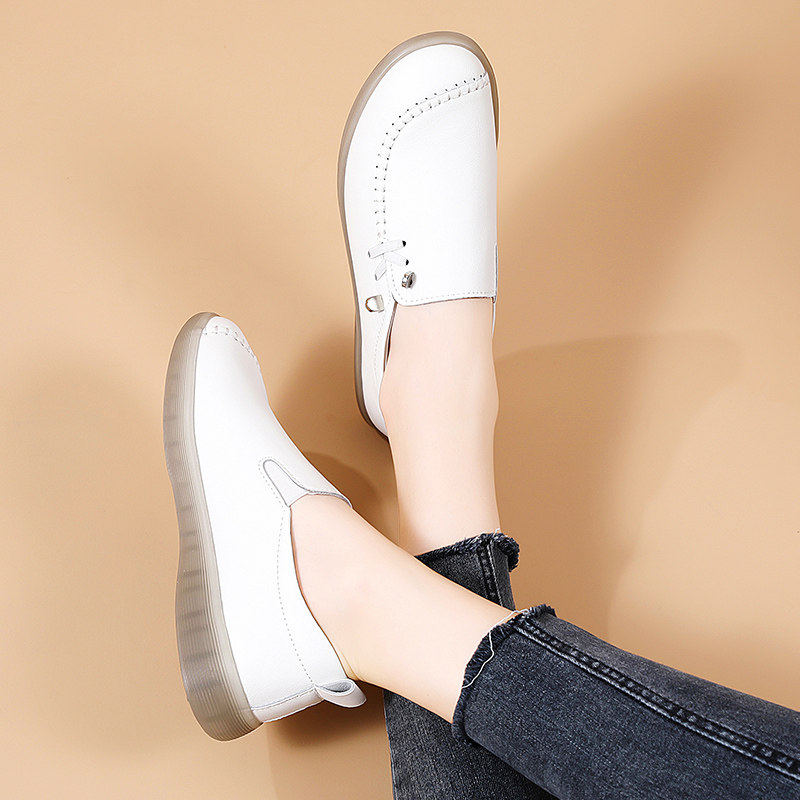 欧伦啄木鸟真皮妈妈鞋一脚蹬牛筋底女鞋软底老北京布鞋单鞋春季新