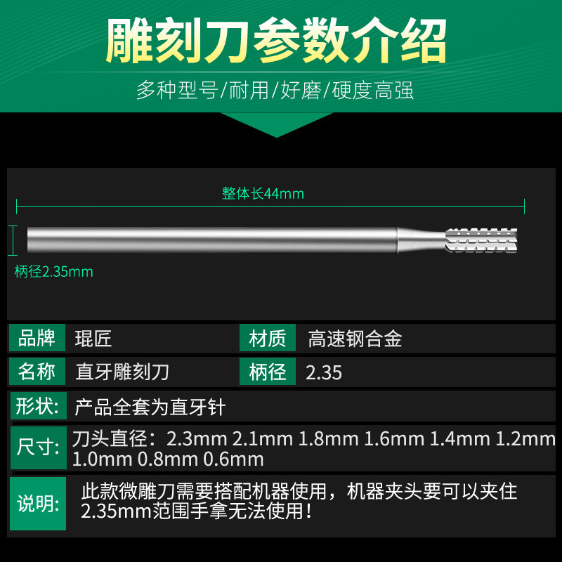 电动核雕刀直牙针木工雕刻刀木雕套装2.35柄打铣刀钻头
