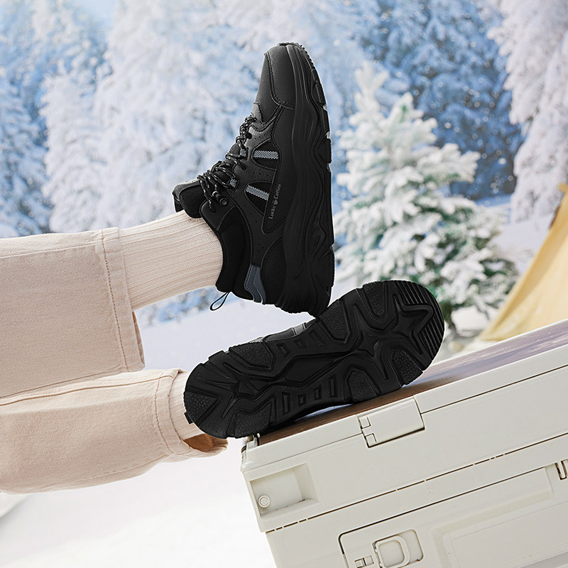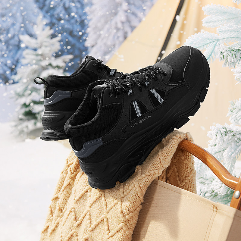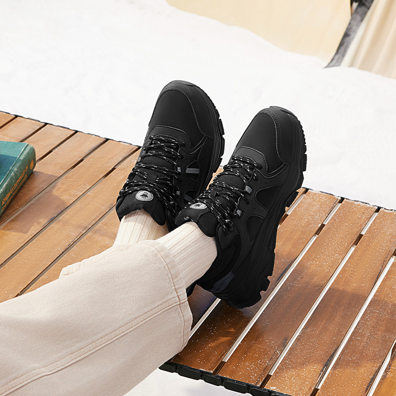 乔丹冬季皮面加绒防水运动鞋男鞋跑步鞋减震轻便软底黑色爸爸跑鞋