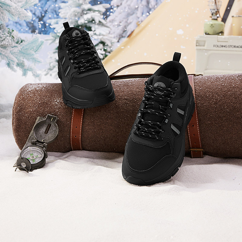 安踏男鞋运动鞋男款冬季新款官方旗舰正品黑色皮面男士跑步鞋子男