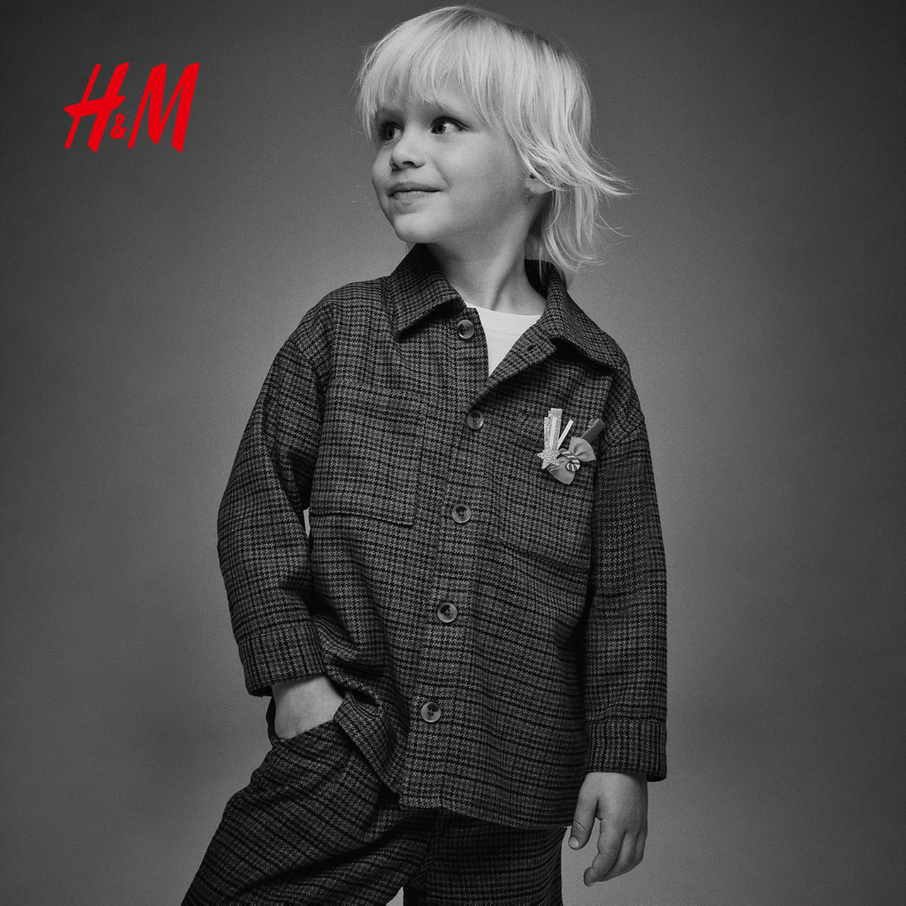 HM儿童童装男童衬衫冬季千鸟格大廓形外套衬衣1305341