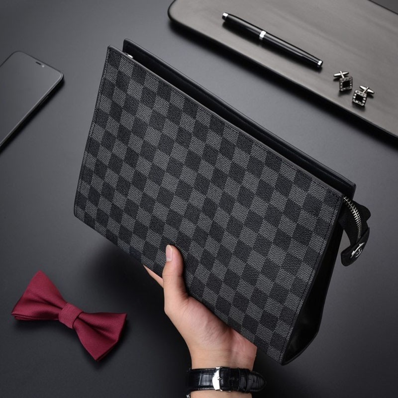 潮牌手包男士手拿包棋盘格子时尚手抓包夹包大容量商务休闲手拎包