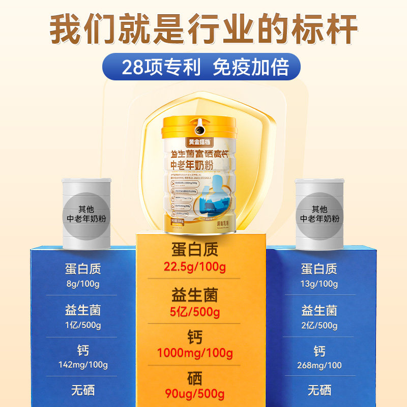 黄金搭档中老年奶粉高钙营养提高免疫力过年货保健品礼盒富硒送礼