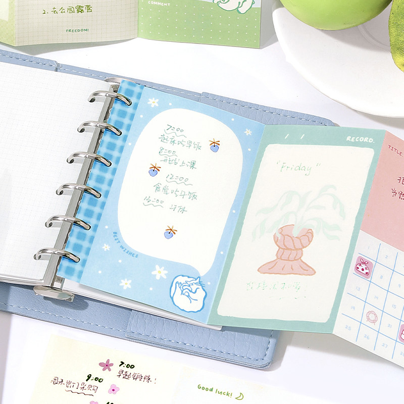 NOTE FOR A7风琴三折活页便签《彩虹奏鸣曲》法式浪漫涂鸦百搭动物装饰拼贴活页三折内页内芯备忘便签手帐