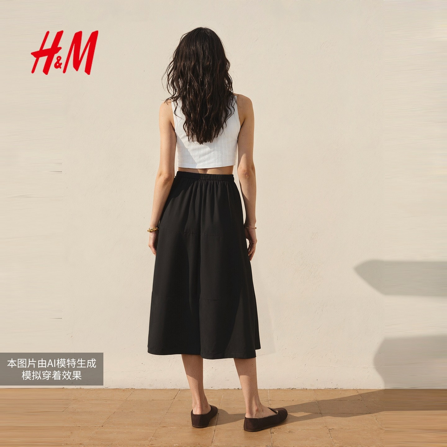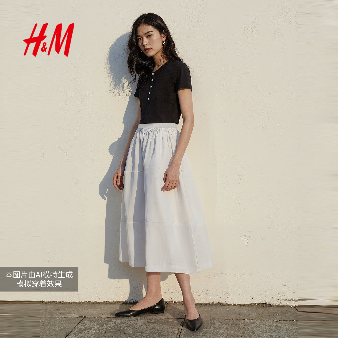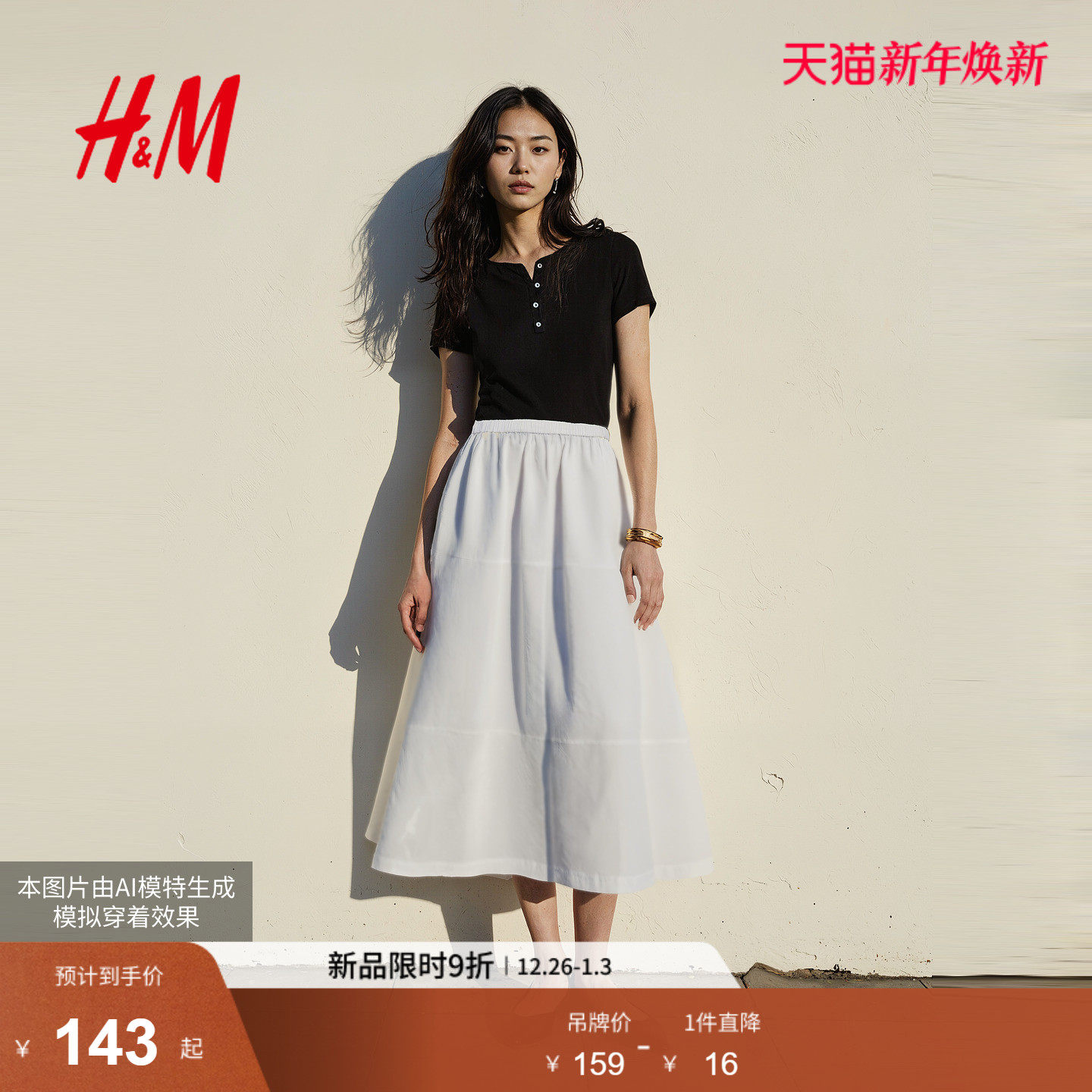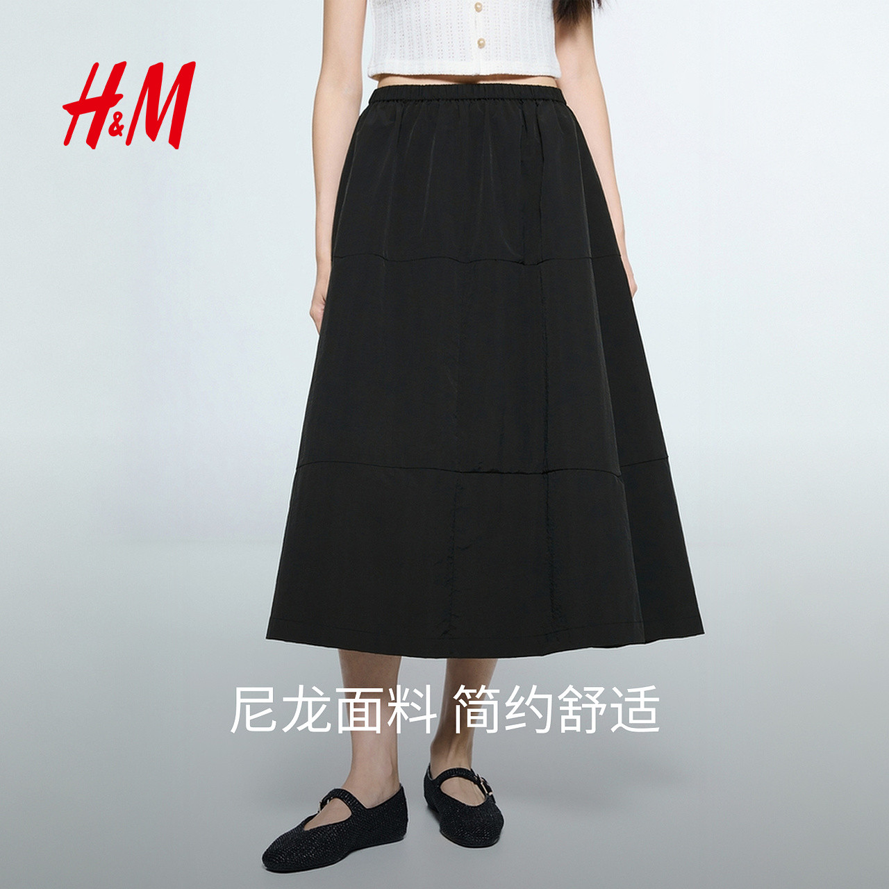HM女士半身裙2025冬季新款学院风休闲百搭A字尼龙伞裙1000012