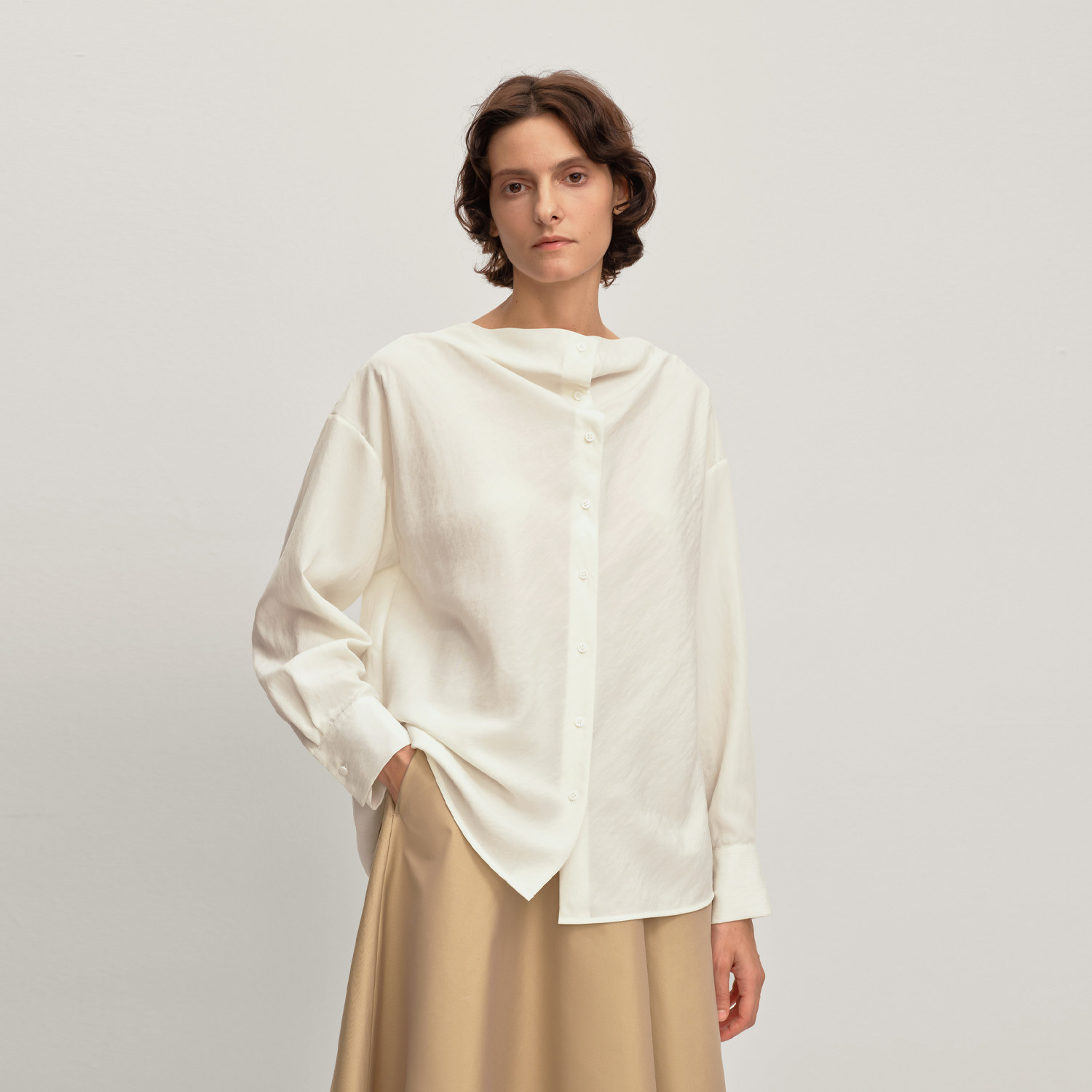 OVV2025秋冬新款女装优雅荡领简约版型通勤长袖休闲衬衫