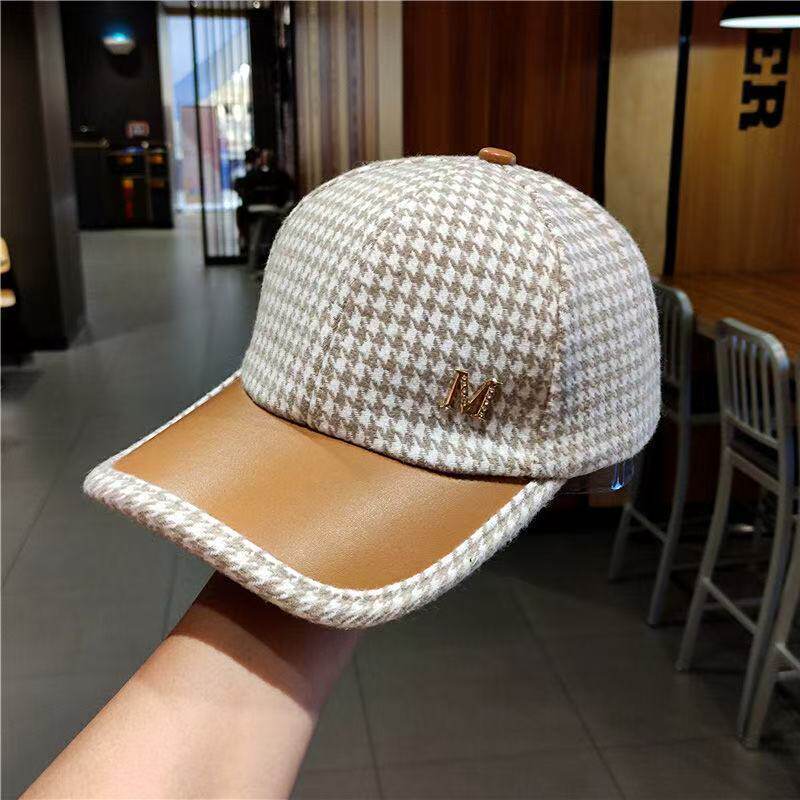 格子棒球帽女加厚保暖帽冬季网红新款鸭舌帽大头围显脸小遮阳帽25