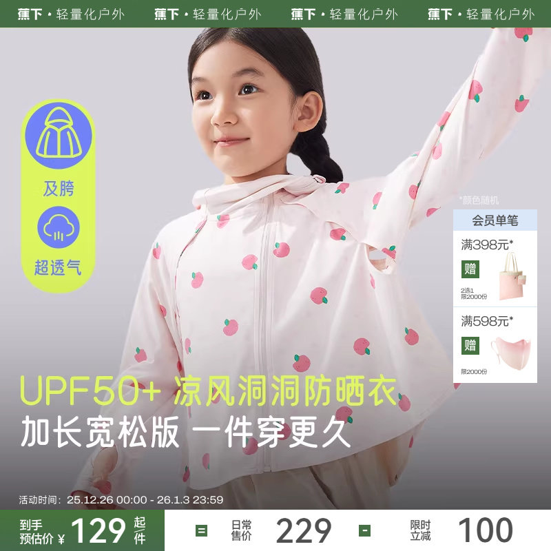 蕉下儿童防晒衣凉感透气速干冰皮衣海边防紫外线加长冰丝防晒服