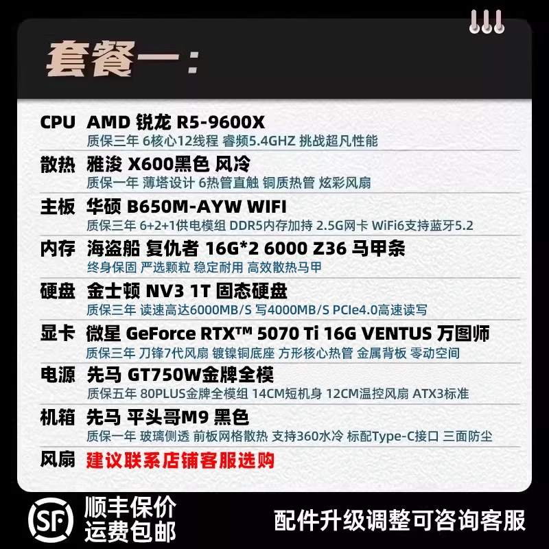装机猿玩家店 微星GeForce RTX5070Ti 万图师/9600X 电竞游戏主机