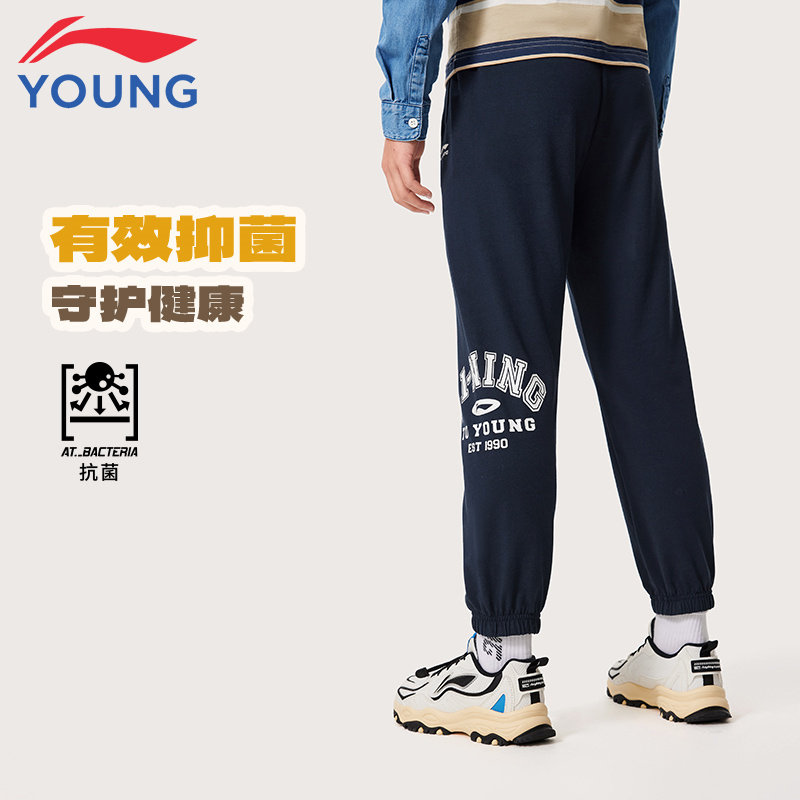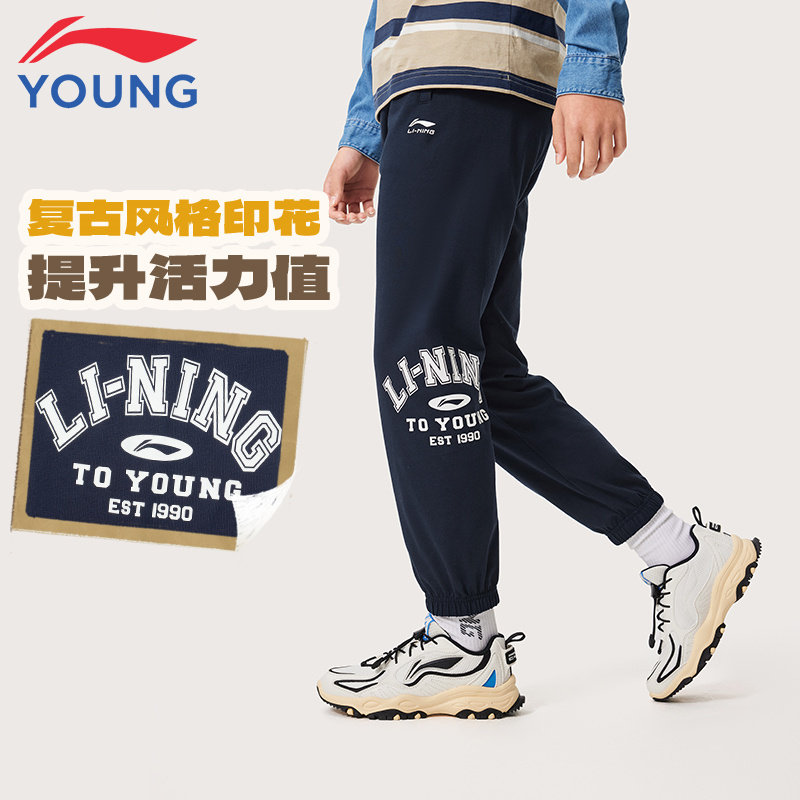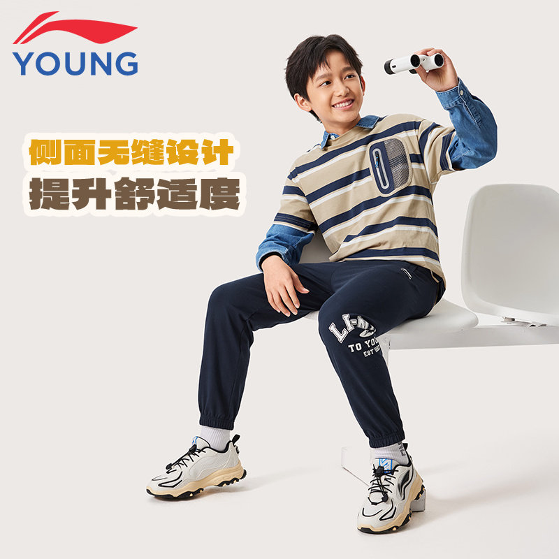 李宁儿童运动裤卫裤男大童女童秋季薄款宽松收口休闲长裤男孩裤子