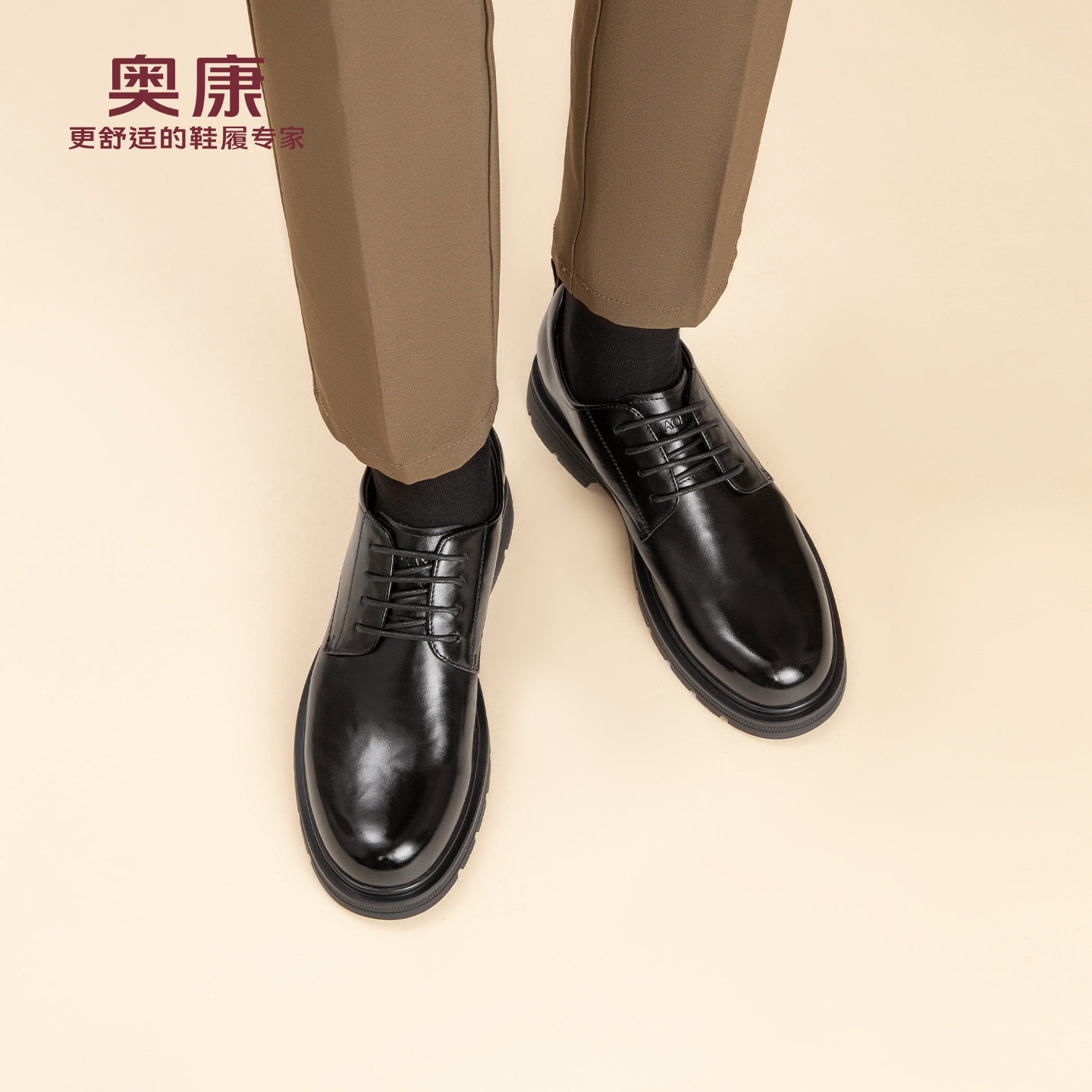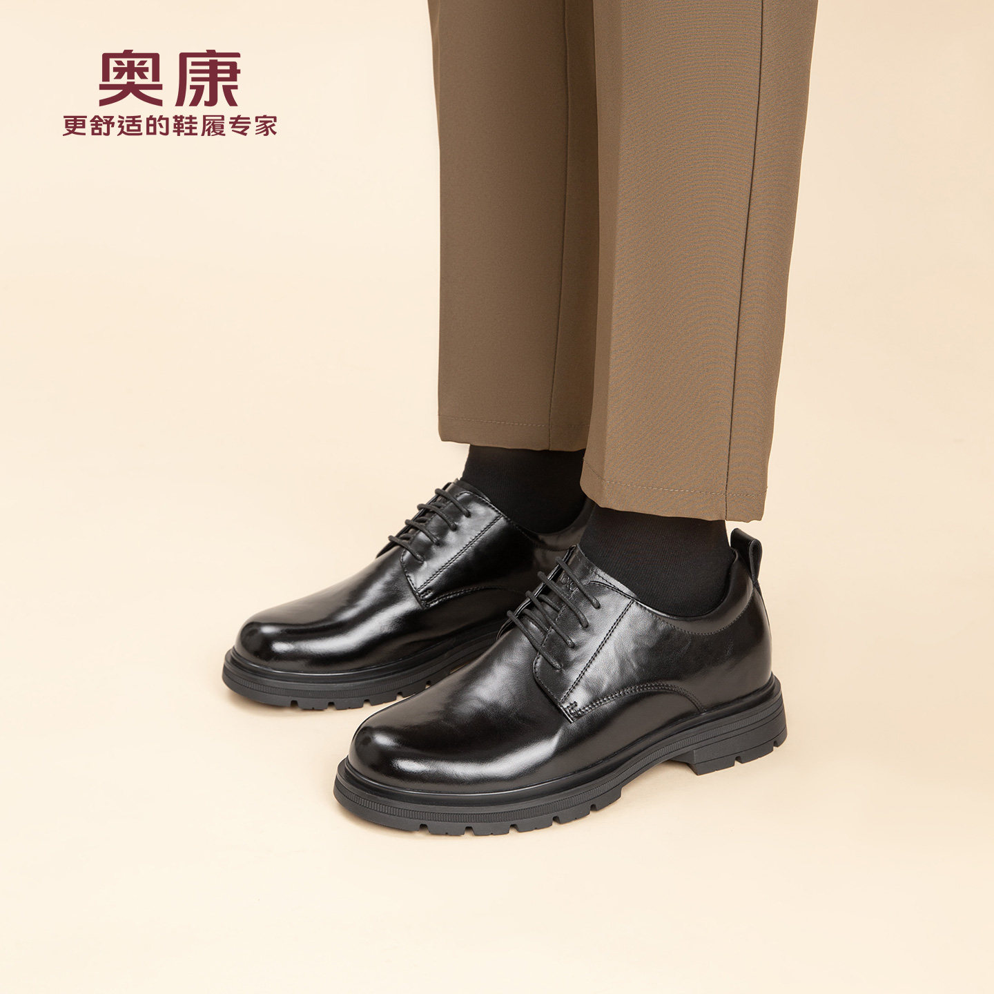 奥康 男鞋2025秋季新款男士正装皮鞋德比鞋男商务系带厚底增高鞋N