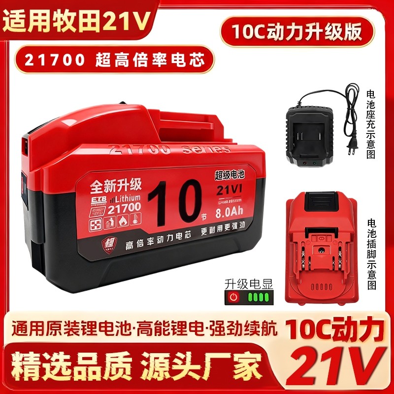 适用牧田21700大容量10C锂电池21V角磨机割草机洗车机电锤电扳手